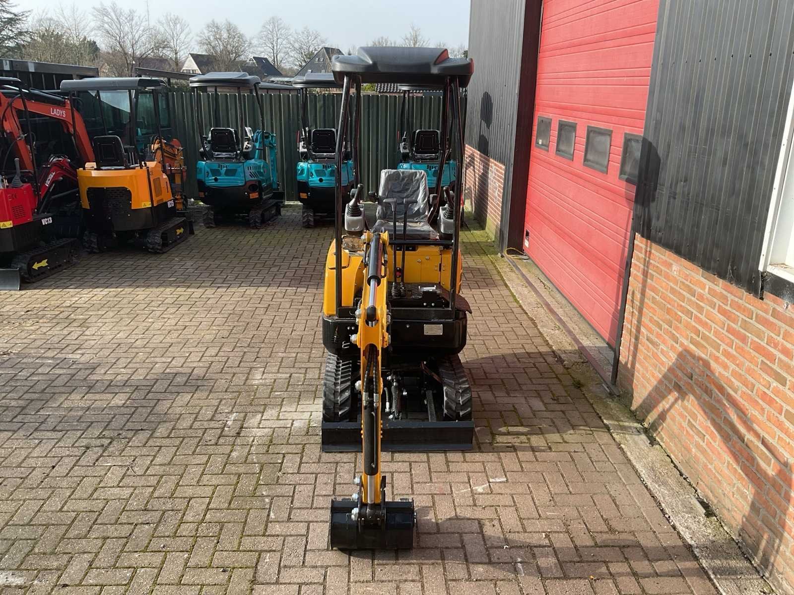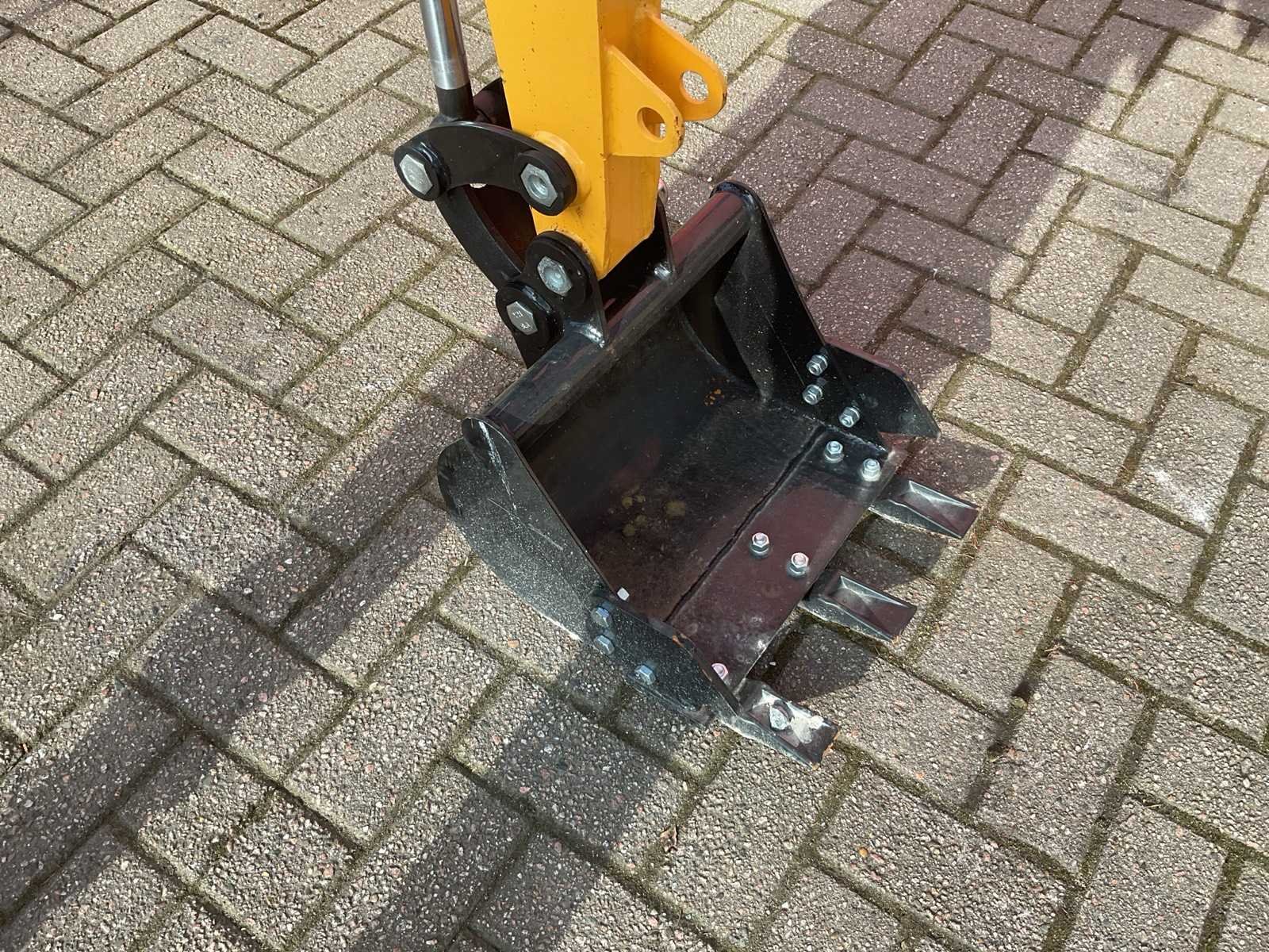 Voorzien van rupsaandrijving; 12 pk vermogen; Diesel motor; Bedrijfsgewicht: 1.500 kg; 2500x950x2200 mm LxBxH; Rubber tracks: 180 mm breed; Graafbak: 400 mm; 360° rotatie; Joystick / servo bediening; Werkverlichting; Elektronisch display; Ongebruikt Merk: JPC Type: KV15 Geel