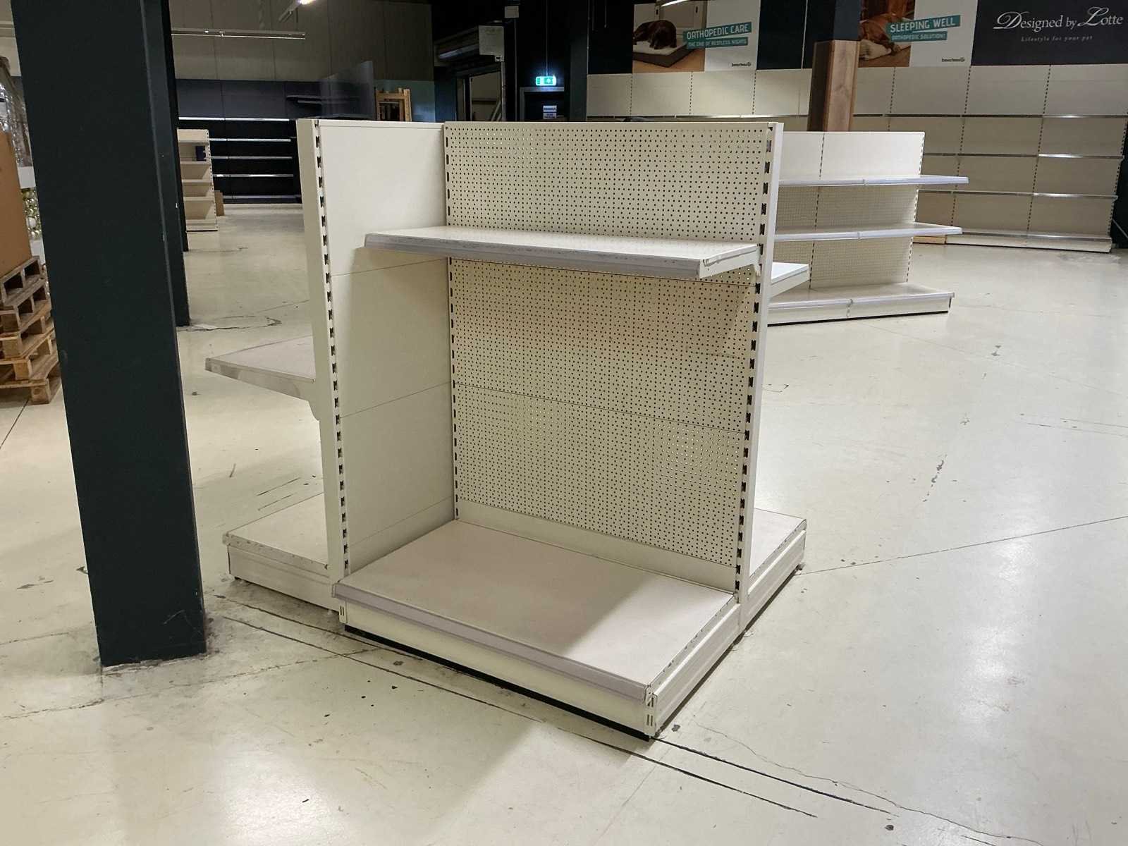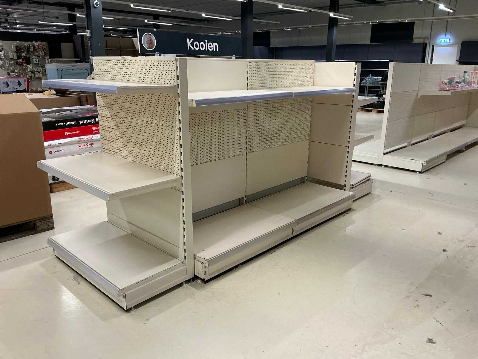 17 X Staander 40 X Plankdrager 38 X Legplank 60 X Achterwand Let op! Dient professioneel gedemonteerd te worden en exclusief inhoud. Type: Tego Afmeting b: 1000mm Afmeting h: 1450mm Totale afmeting Breedte: 10000mm Totale afmeting Hoogte: 1450mm