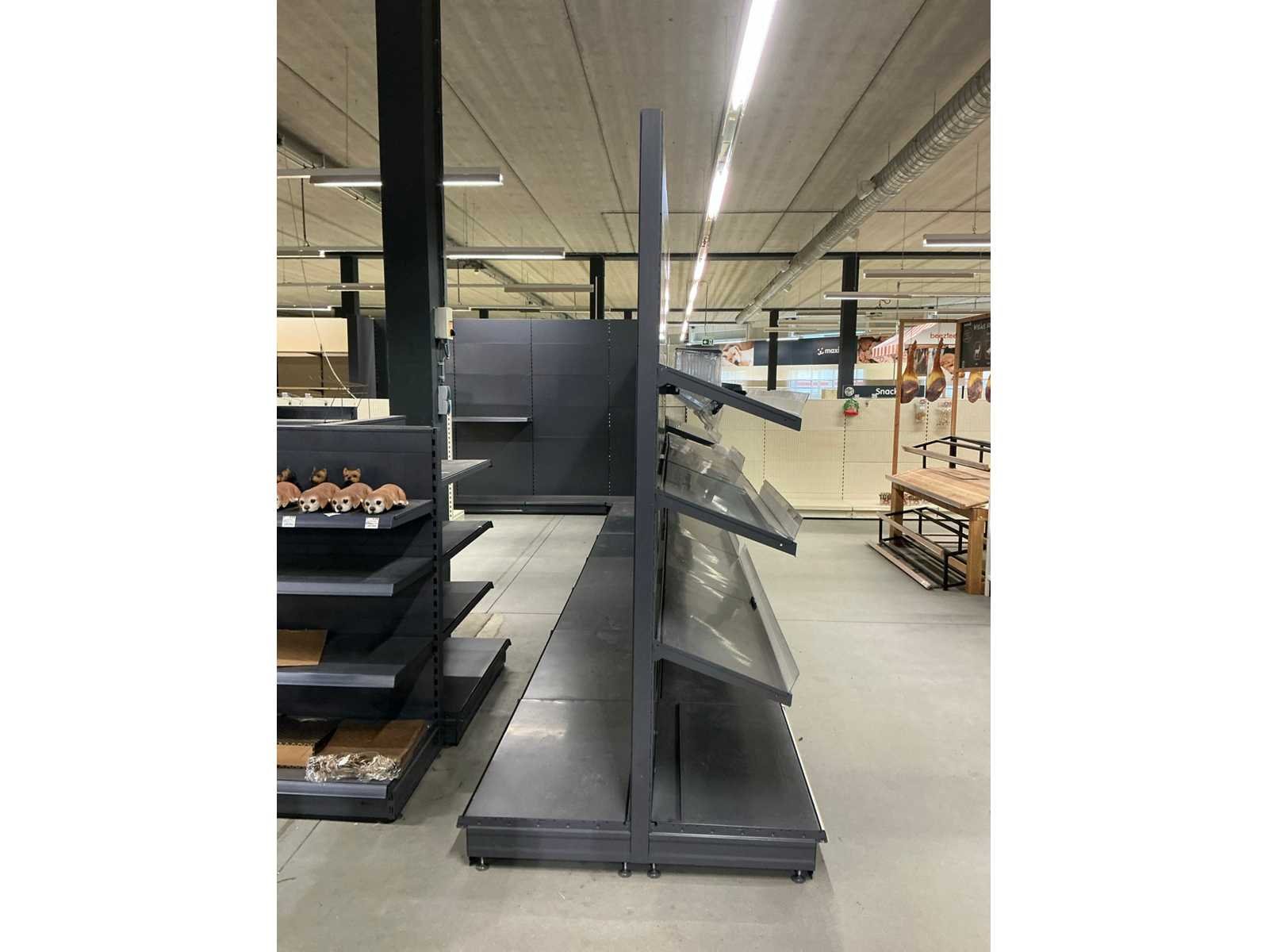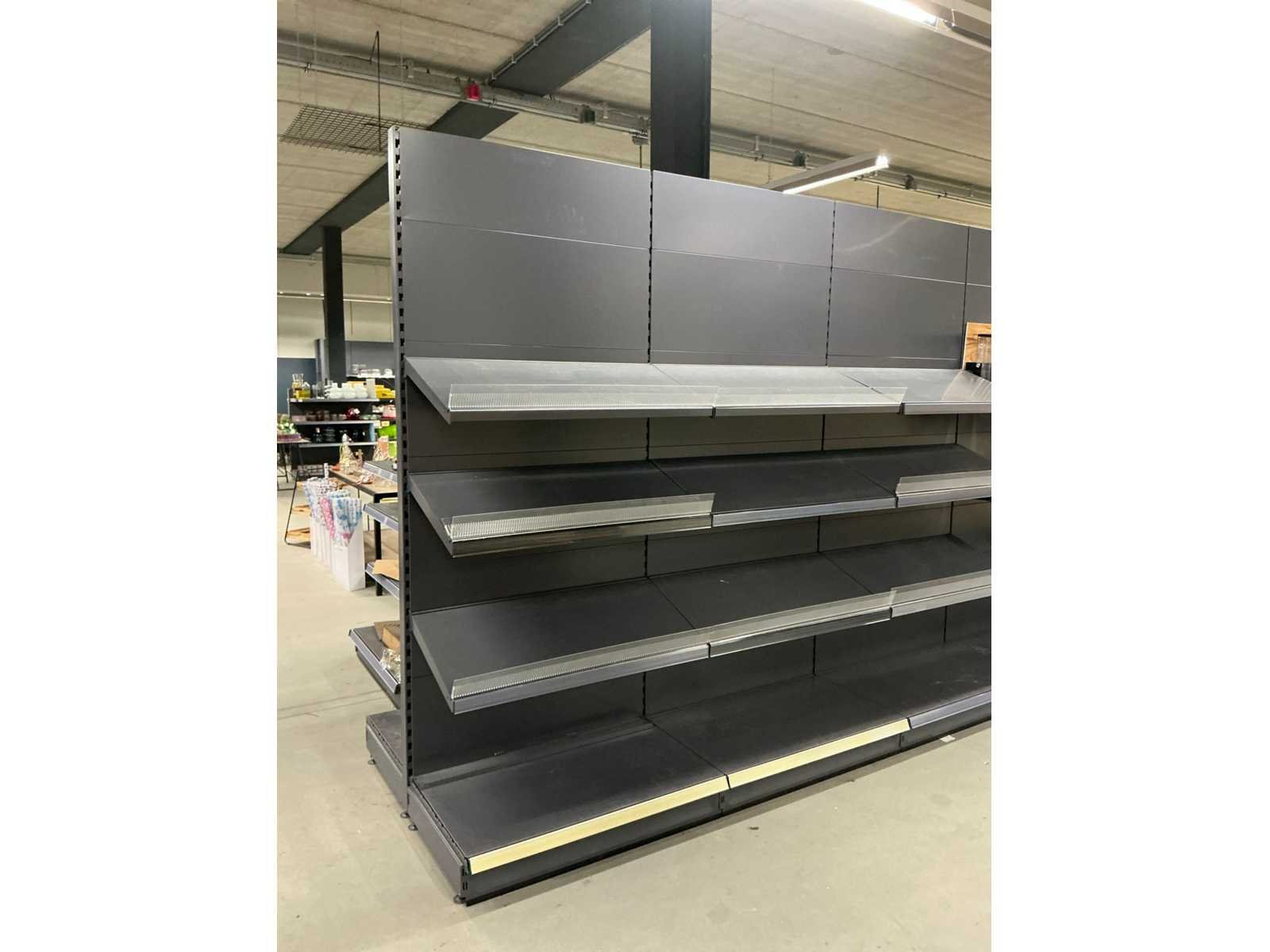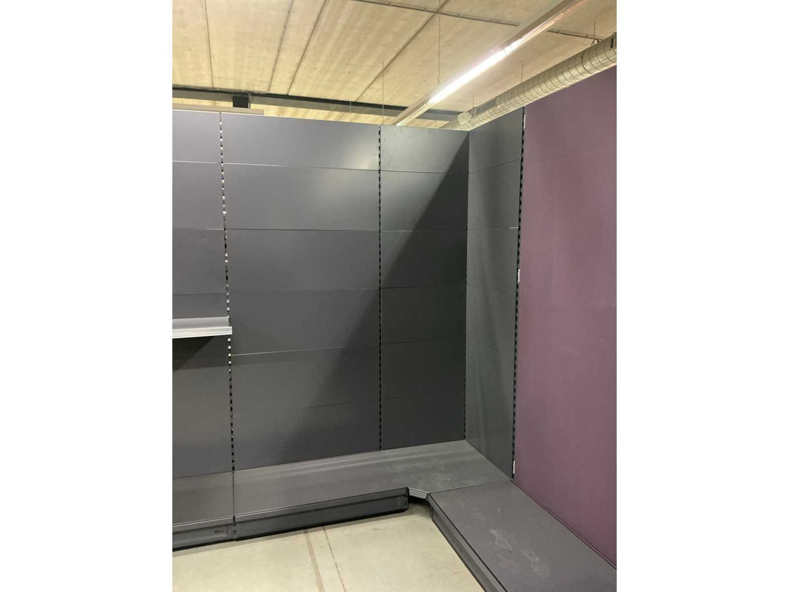 Staander X 13 Plankdrager X 49 Legplank X 38 Achterwand X 78 Let op! Dient professioneel gedemonteerd te worden en exclusief inhoud. Type: Tego Afmeting b: 1000mm Afmeting h: 2450mm Totale afmeting Breedte: 11000mm Totale afmeting Hoogte: 2450mm