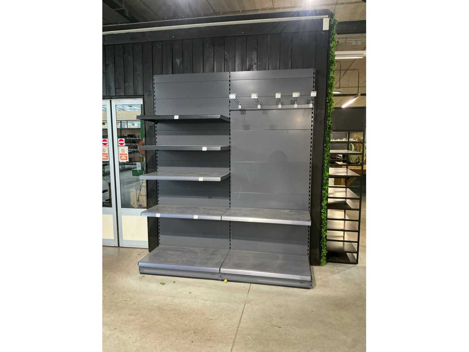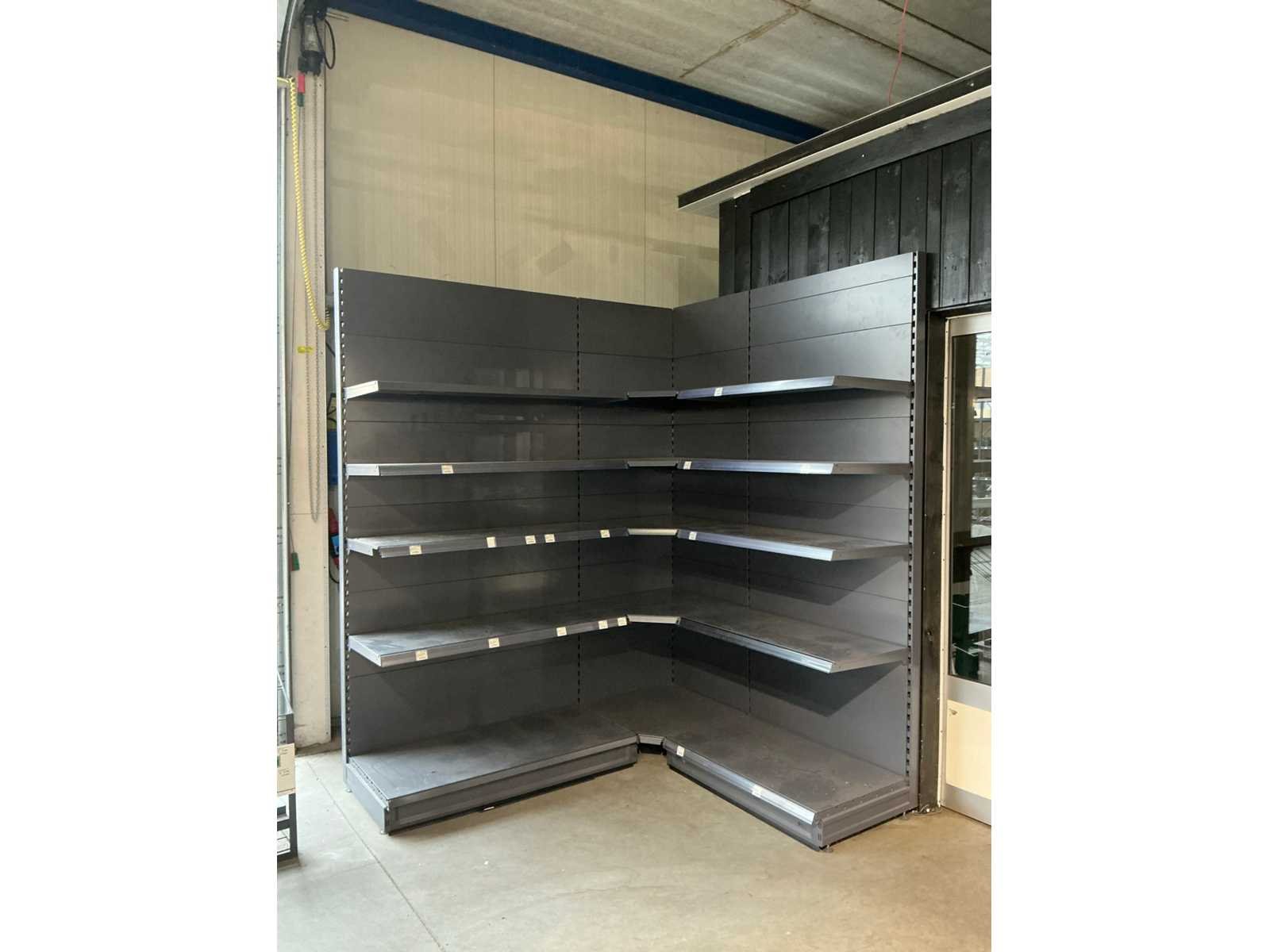 Staander X 8 Plankdrager X 34 Legplank X 22 Achterwand X 36 Let op! Dient professioneel gedemonteerd te worden en exclusief inhoud. Type: Tego Afmeting b: 1000mm Afmeting h: 2450mm Totale afmeting Breedte: 5000mm Totale afmeting Hoogte: 2450mm