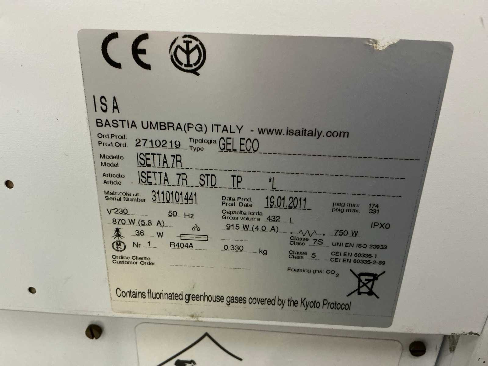Merk: ISA Type: Gel Eco Bouwjaar: 2011 Mobiel: true Ingebouwde koelcompressor: true Serienummer: 3110101441 Aansluiting: 230V Totale afmeting L: 780mm Totale afmeting Breedte: 1350mm Totale afmeting Hoogte: 1150mm Capaciteit.: 432l