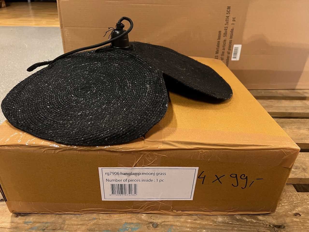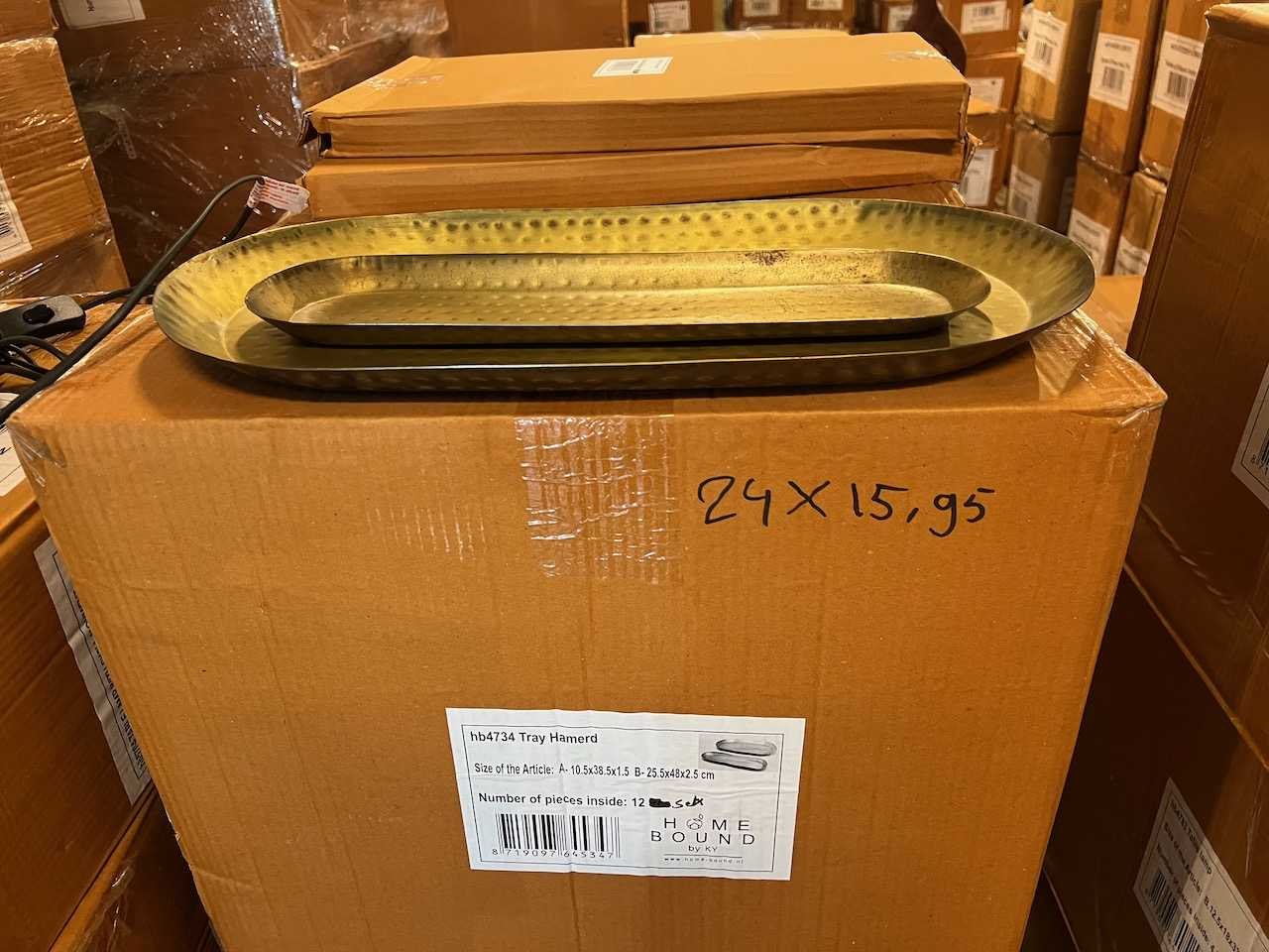 24x €15,95 tray hamerd 1x €105 metalen boom 6x €49,95 table lamp small 72x €6,95 T-light 20x €25,95 T-light set/5 4x €36,50 pandent lamp 12x €49,95 Rotan wandlamp 4x €99 hanglamp moonj grass 30x €6,95 candle holder Winkelwaarde totaal €3.200,- Bestaande uit: 10 artikelen