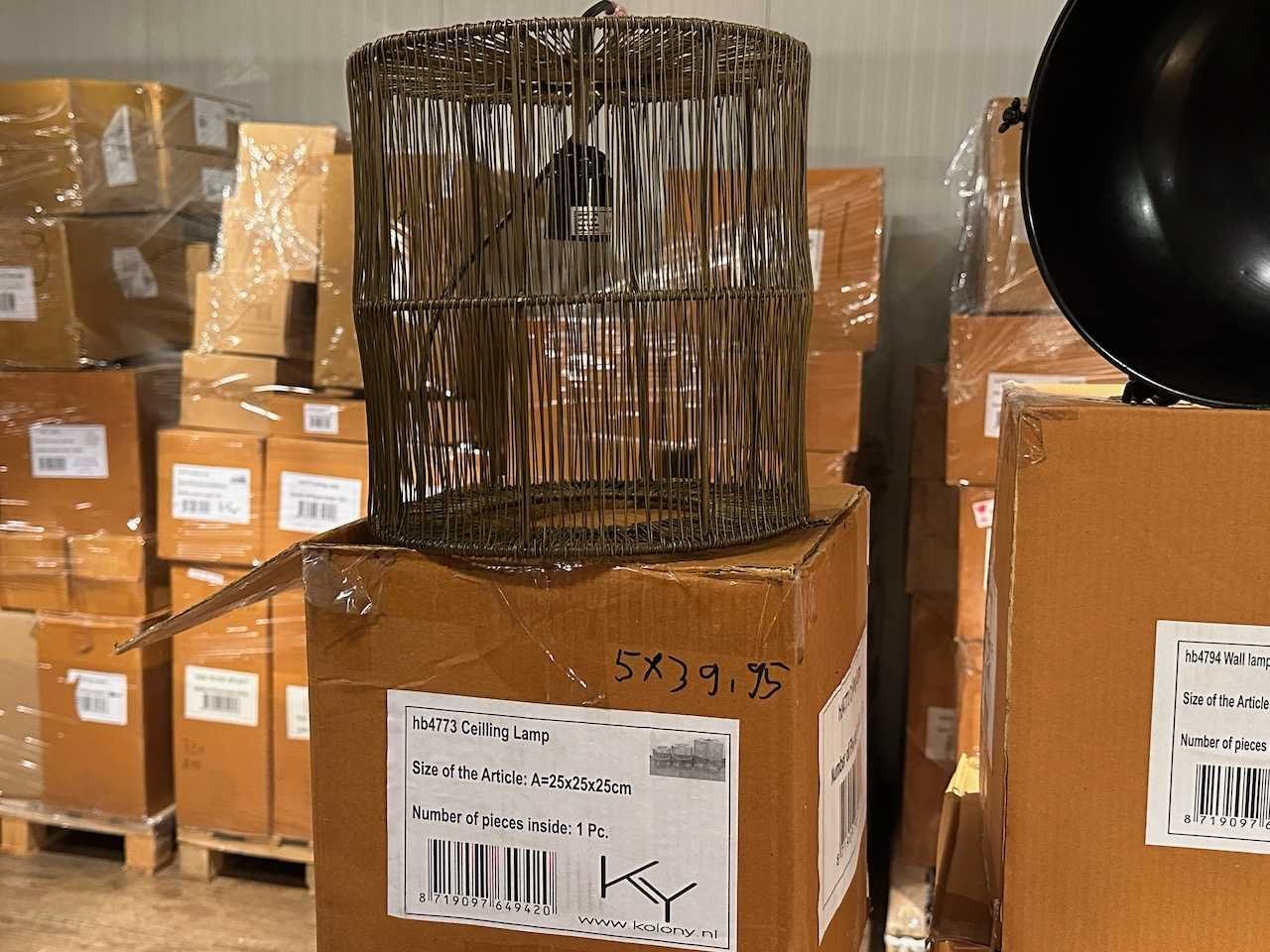 7x €49,95 wall lamp 5x €39,95 ceilling lamp 8x €89,95 round tray 5x €39,95 pendant 108x €5,95 glazen potje met deksel 60x €5,95 round Hammer candle holder 36x €14,95 leaf small 12x €36,50 decoratie Winkelwaarde totaal €3.700,- Bestaande uit: 241 artikelen