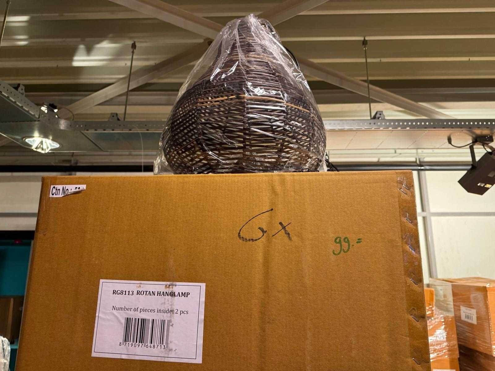 4x €79,99 wall lamp 6x €99 Rotan hanglamp 4x €149 hanglamp moonj grass 10x €69,99 hanglamp moonj grass 11x €75 Rotan hanglamp 10x €29,95 table lamp large 3x €99 hanglamp moonj grass Winkelwaarde totaal €3.600,- Bestaande uit: 48 artikelen