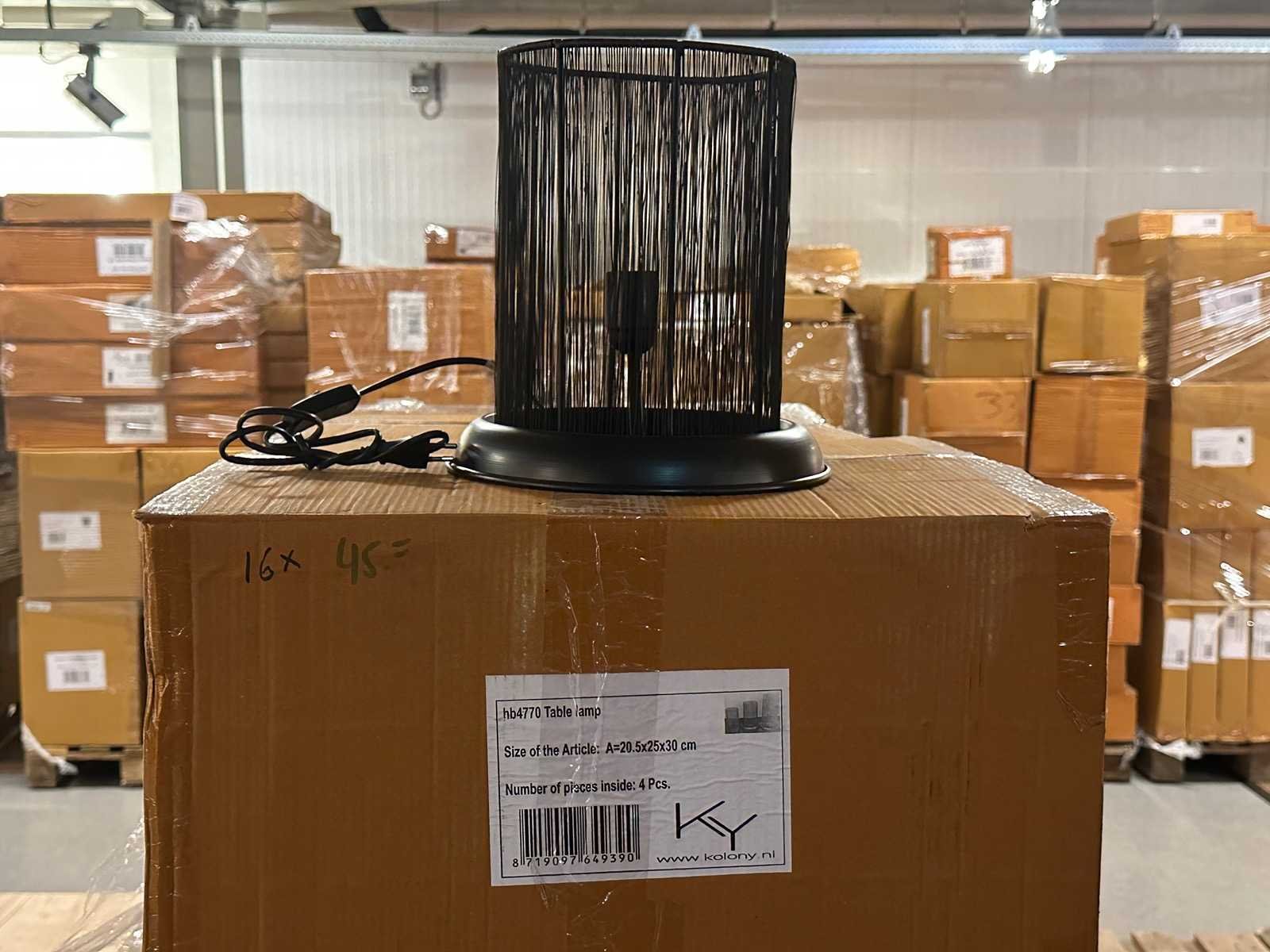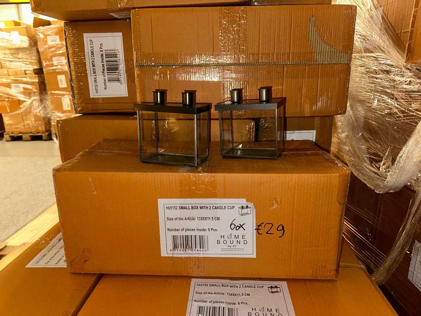 60x €29 small box with 2 candle cup 16x €45 table lamp 3x €57,50 pandent lamp with chain 60x €5,95 T-light 40x €5,95 hammer candle holder Winkelwaarde totaal €3.300,- Bestaande uit: 179 artikelen