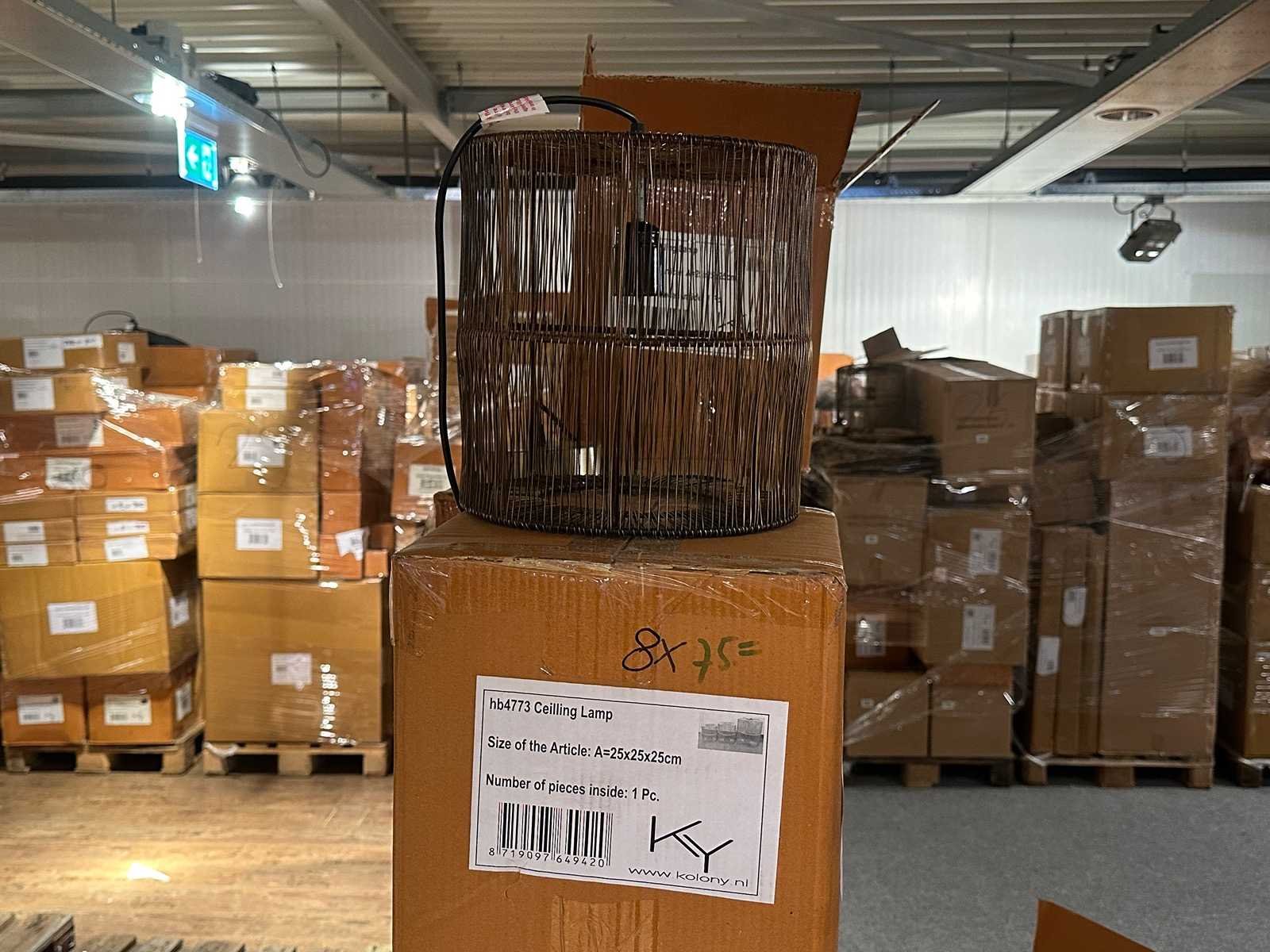 8x €75 ceilling lamp 6x €59,95 table lamp 252x €6,95 T-light 12x €89,95 Rotan hanglamp 28x €5,95 hammer candle holder Winkelwaarde totaal €4.000,- Bestaande uit: 306 artikelen