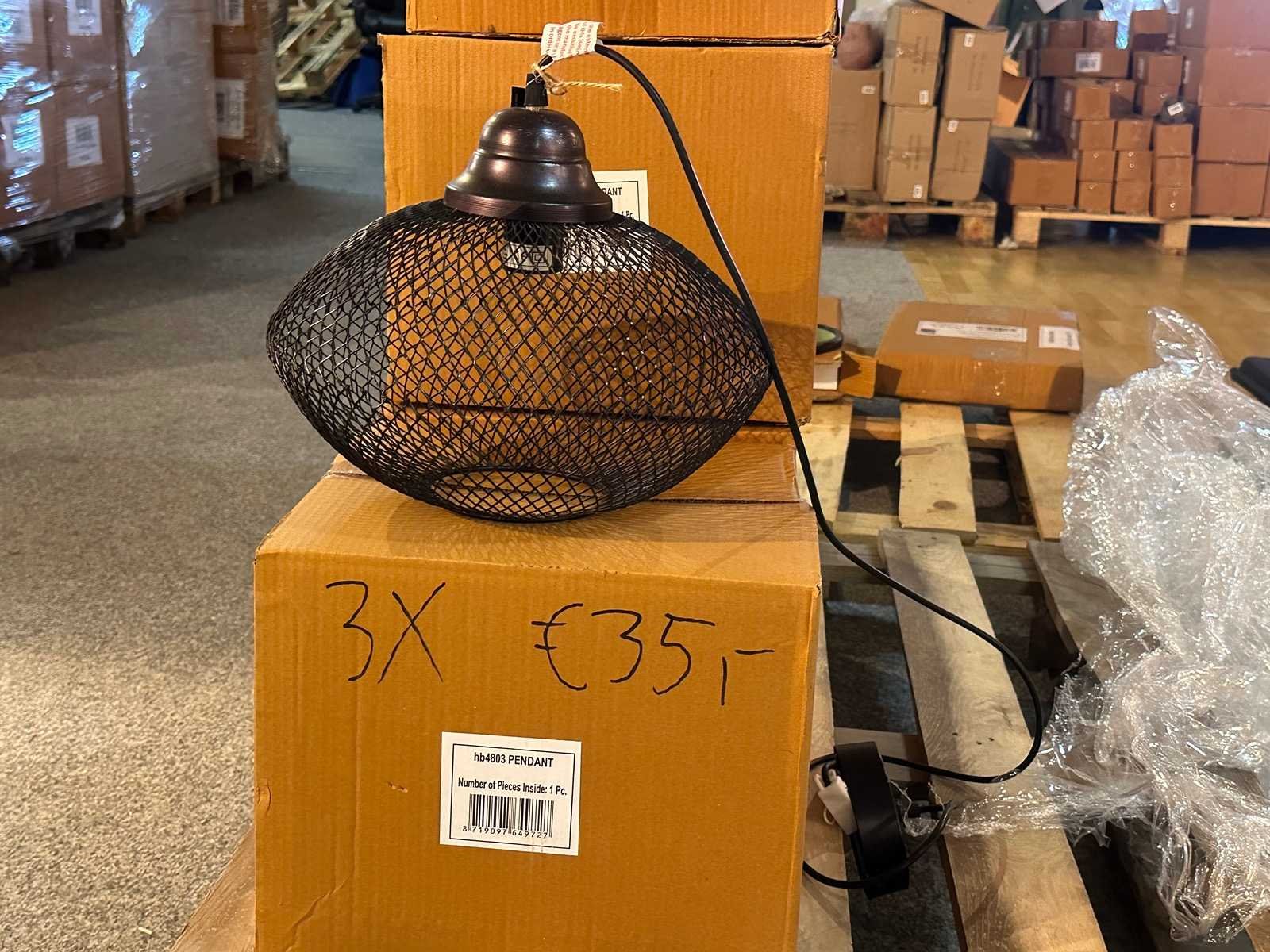 2x €105 kv6903 metalen boom 3x €35 hb4803 pendant 8x €16,95 hb4716 pandent lamp with chain 8x €99,95 rg9705 hanglamp moonj grass 4x €49,95 hb4794 wall lamp 28x €74,95 hc3572 wandhanger kraanvogel 8x €89,95 hb4797 round tray set/3 Winkelwaarde totaal €4.300,- Bestaande uit: 61 artikelen
