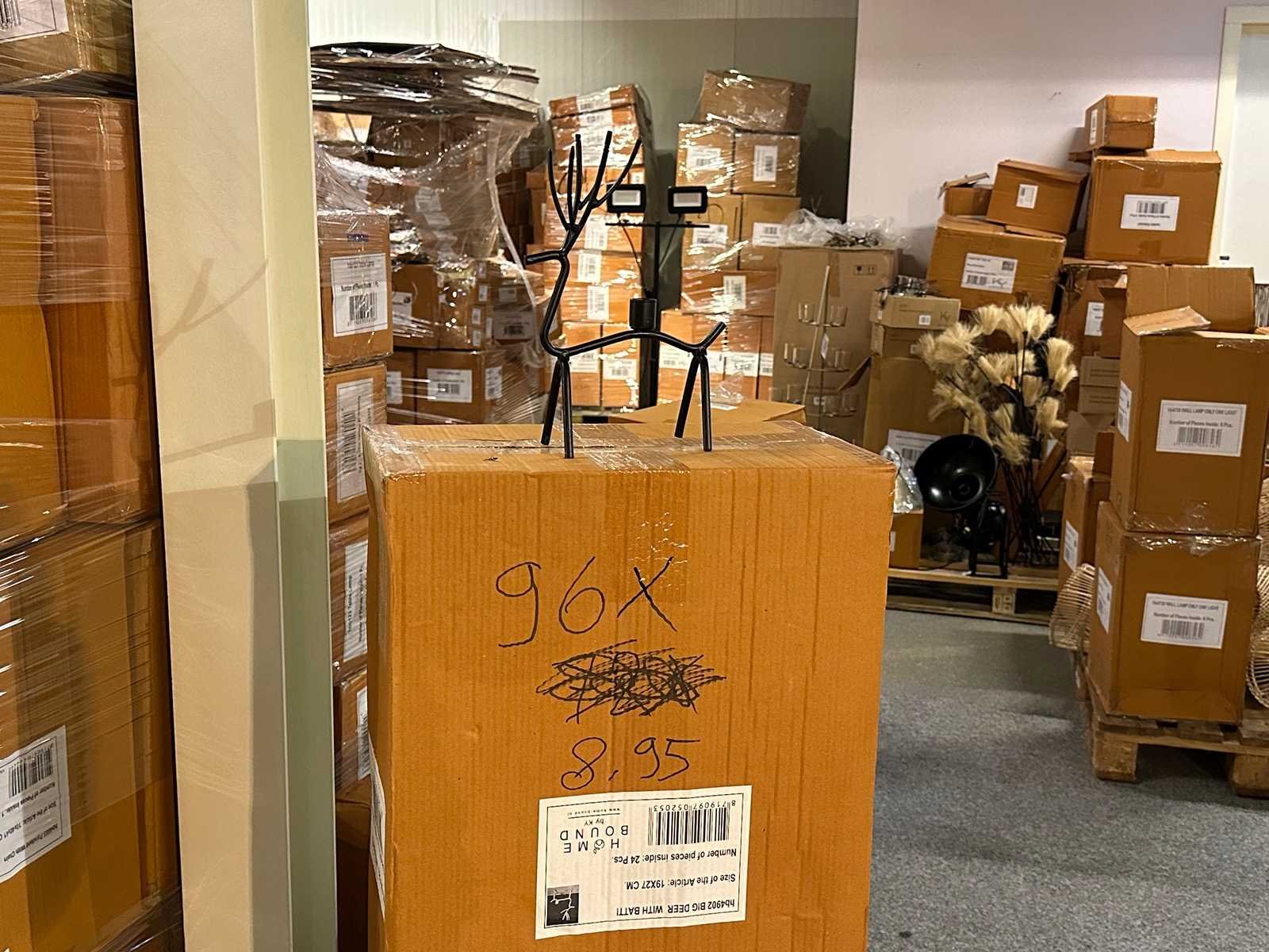96x €8,95 hb4902 big deer with batti 5x €35 hb4786 table lamp large 4x €49,95 hb4795 wall lamp 6x €49,95 hb4758 pandent lamp 8x €35 hb5354 wood table lamp Winkelwaarde totaal €2.000,- Bestaande uit: 119 artikelen