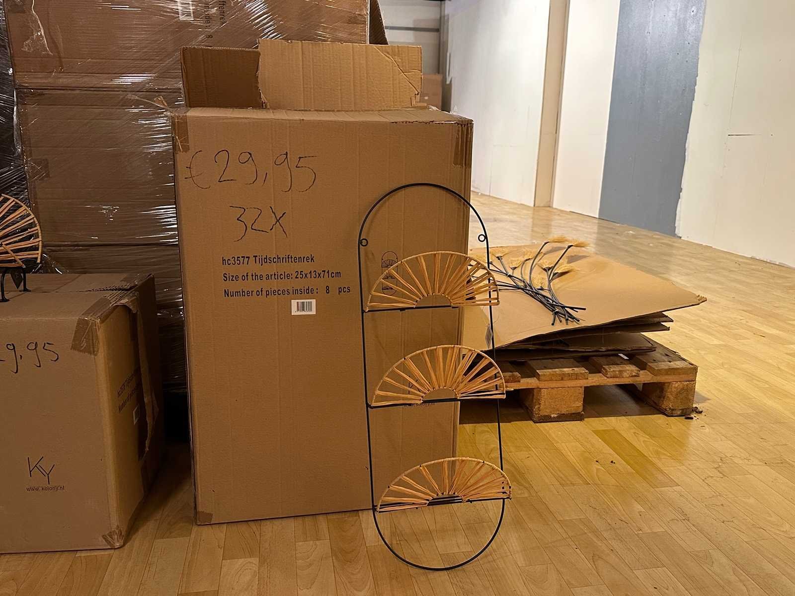 144x €8,95 hb4904 big deer with batti 32x €29,95 hc3577 tijdschriftenrek 4x €119,95 rg8107 Rotan hanglamp 4x €69,95 hb4665 pandent with chain Winkelwaarde totaal €3.000,- Bestaande uit: 184 artikelen
