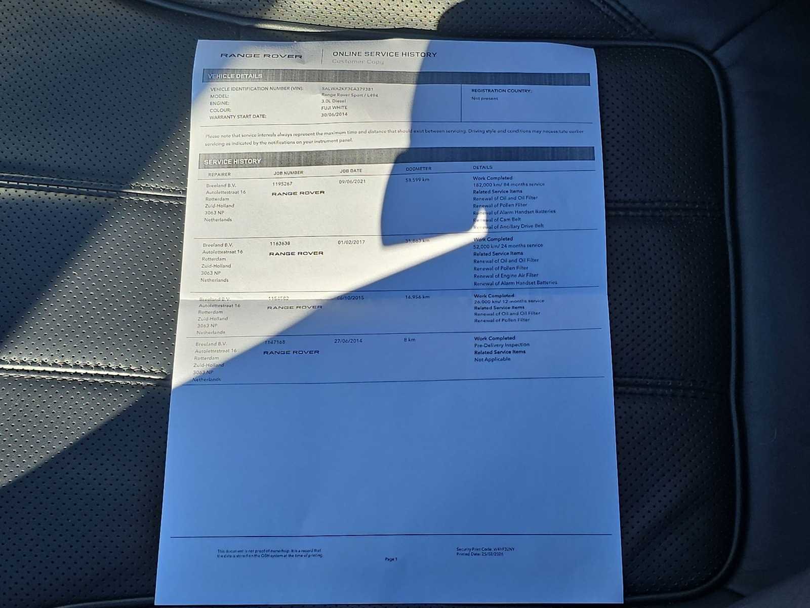 Voertuig- en merkspecifieke opties (AutoVIN) 5-wegs stoelverst Airco premium Bu-spiegel dimmend Bu-spiegel dubb verw Bu-spiegel el inklap Keyless entry Portierruit gelaagd Spiegel met licht Stoelen v geklimatis Stoelverst elektr Zijruit veiligh glas Zit-helling stoel v 2-lagen uni 2993ccm 215kw 8-versn automaat Achterklep elektr Achteruitrij camera Afdek dorpel verl Audiosysteem premium Banden 275/40 r22 Bandendrukcontrole Bi-spiegel antiverbl Blindspot monitoring Cruise control Hoofdsteunen elektr koelbox Kopl-rein-inst Koplampen adaptief Lendensteun elektr Memory-schakeling mistlampen navigatiesysteem Onderstel adaptief Panoramadak elektr Parkeerhulp v Rij-informatiesyst Sperdifferentieel standverwarming Stuurkolom verstelb Supervergrendeling Systeem start & stop Traction control Transm schak stuurw Uitlaatgasnorm euro5 Uitvoering ged leer Va vin ea364210 Velgen 9.5 j x 22 lm Verlicht bi-ruimte voorruit verwarmbaar Kenteken: 9-XDJ-18 Merk: Land Rover Model: Range Rover Sport Type: 3.0 SDV6 Autobiography Dynamic Bouwjaar: 2014 Afgelezen kilometerstand: 85000km Cilinderinhoud: 2993cc Vermogen (kW): 215kW Brandstof: Diesel Chassisnummer: SALWA2KF3EA379381 NAP status: Logisch Datum eerste toelating: 2014-07-15 Datum eerste toelating (NL): 2014-07-15 APK vervaldatum: 2026-05-03 Vermogen (pk): 288hp Aandrijving: AWD Aantal zitplaatsen: 5 Maximaal trekgewicht ongeremd: 750kg Maximaal trekgewicht geremd: 3500kg Kleur: wit Transmissie: Automaat Emissieklasse: 5 Aantal deuren: 5 Aantal sleutels: 1 Ledig gewicht: 2083kg Bruto BPM (NL): 26175€ Aantal cilinders: 6 Carrosserie: SUV Nationaliteit documenten: Nederlands Onderhoudshistorie: Aanwezig danwel digitaal Carfax Link: https://was.carfax.eu/v0/api/ccdid/5100016408/svc/201/vinreg/9XDJ18/checksum/eyJhbGciOiJIUzI1NiIsInR5cCI6IkpXVCJ9.eyJleHAiOjE3NzY3Nzc1NjJ9.jxnZZMteOdcpTeQz76rgDjDXYR9erHa1NrBPIBJiF6c Start en rijdt: Start and drive startinformatie : Start en rijdt Self drive export possible : true Airconditioning: true Navigatie: true LED-koplampen: false Vierwielaandrijving 4x4: true
