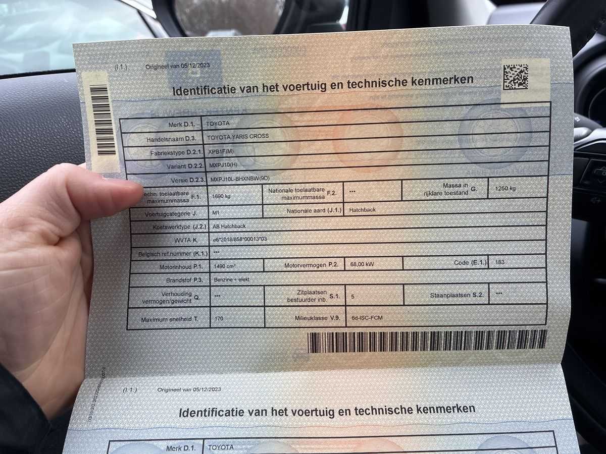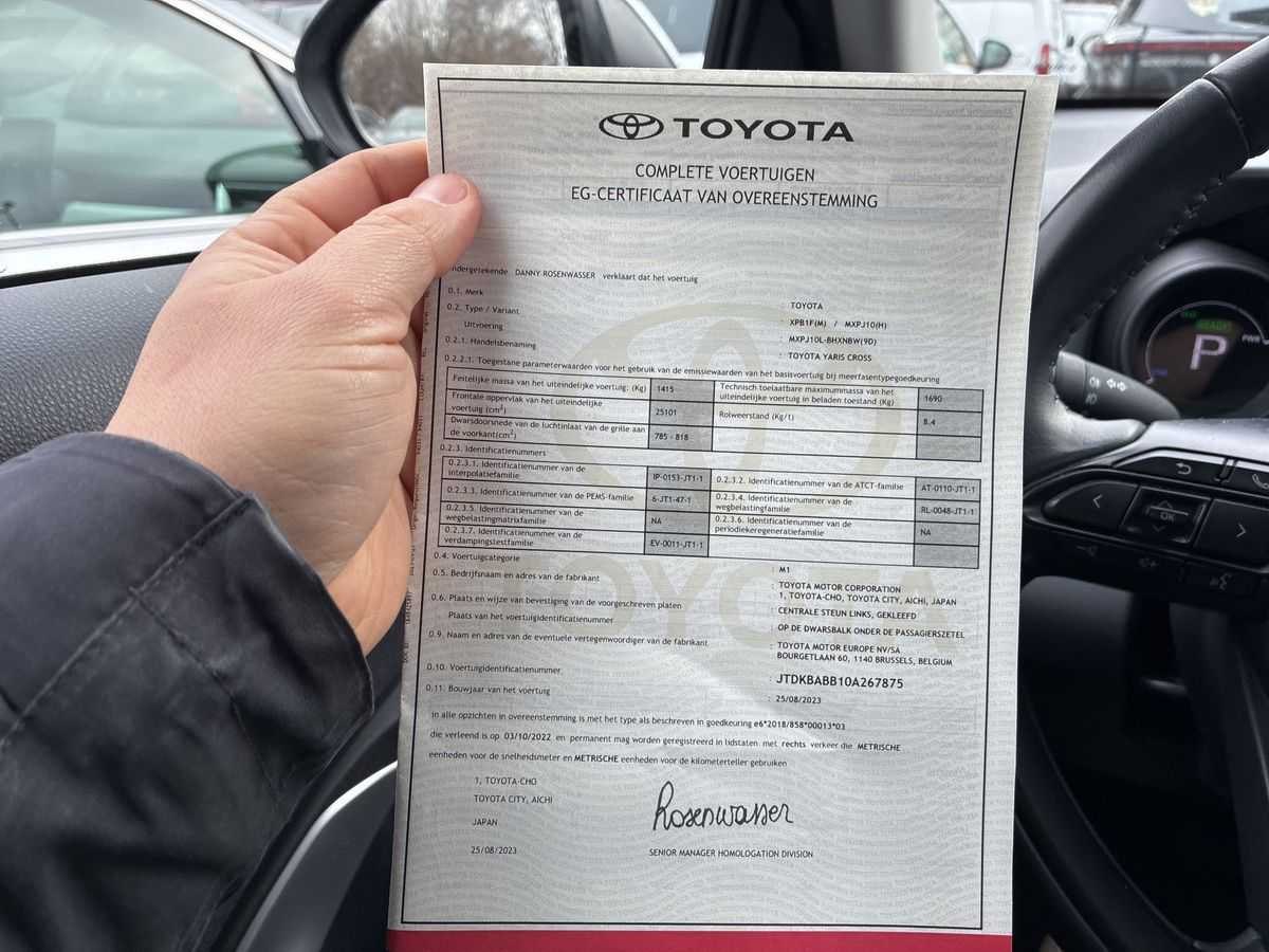 |CLIMA|ADAPT CRUISE|PARKEERSENSOREN+CAMERA|MULTIMEDIA Voertuig- en merkspecifieke opties (AutoVIN) Banden 205/65 r16..h Bandenreparatie-set Bu-sp el verst/verw Combi-instr tft Hoofdairbag Huis bu-spiegel gesp Instrumenten km/h Noodwiel 16 x 4 t Radio digitaal Radio met scherm 8.0 Stuurwiel leer Velgen 6,5 j x 16 Zij-airbags 1490ccm 85kw 2-lagen metallic 60/40 achterbank Achterlichten led Achteruitrij camera Airco-automaat Alarmoproepsysteem Alarmsysteem Bandendrukcontrole Cruise control Grootlicht-assistent Keyless entry/drive Kruising-assistent Mistlamp led Motorisolatie Port-grepen gespoten Portierluidspreker a Pre-crash systeem Regensensor Roetfilter Ruitmech v/a elektr Transm aut e-cvt Uitv-pakket nv Uitvoering europa Uitvoering n Va 08/2023 Verkeersbord herkenn Voorwielaandrijving Merk: Toyota Model: Yaris Type: Cross .5 Hybrid 2WD Business Edition Bouwjaar: 2023 Afgelezen kilometerstand: 88510km Cilinderinhoud: 1490cc Vermogen (kW): 85kW Brandstof: Hybride Benzine Chassisnummer: JTDKBABB10A267875 NAP status: Logisch Datum eerste toelating: 12-2023 APK vervaldatum: 05-2029 Vermogen (pk): 116hp Aandrijving: FWD Aantal zitplaatsen: 5 Kleur: Grijs Transmissie: Automaat Aantal deuren: 5 Aantal sleutels: 2 Aantal cilinders: 4 Carrosserie: SUV Nationaliteit documenten: België Onderhoudshistorie: Aanwezig danwel digitaal Start en rijdt: Start and drive startinformatie : Start en rijdt Self drive export possible : true Airconditioning: true Navigatie: false LED-koplampen: false