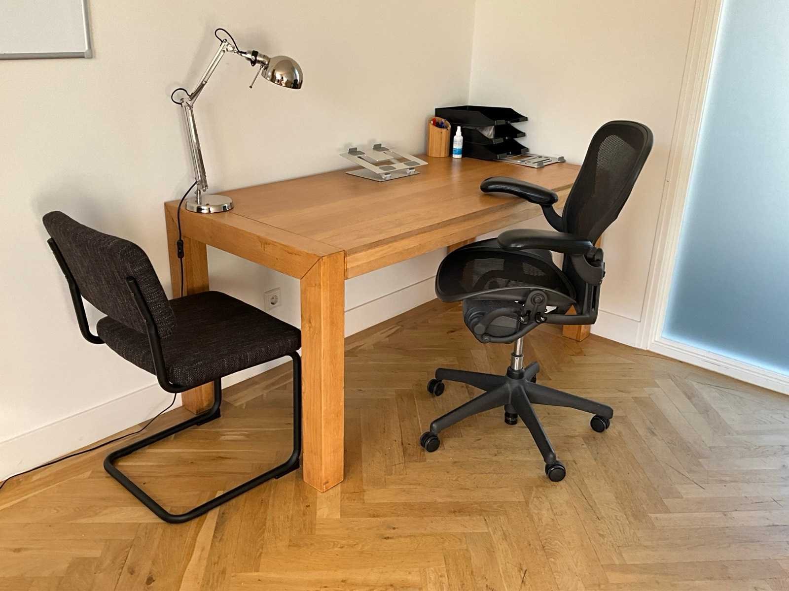 Bestaande uit 1 tafel (165x75x76 cm) en 5 stoelen inclusief vloerkleed, lampen en boekenkast met inhoud ( 104x35x243 cm ) Lengte: 225cm Breedte: 88cm Hoogte: 75cm