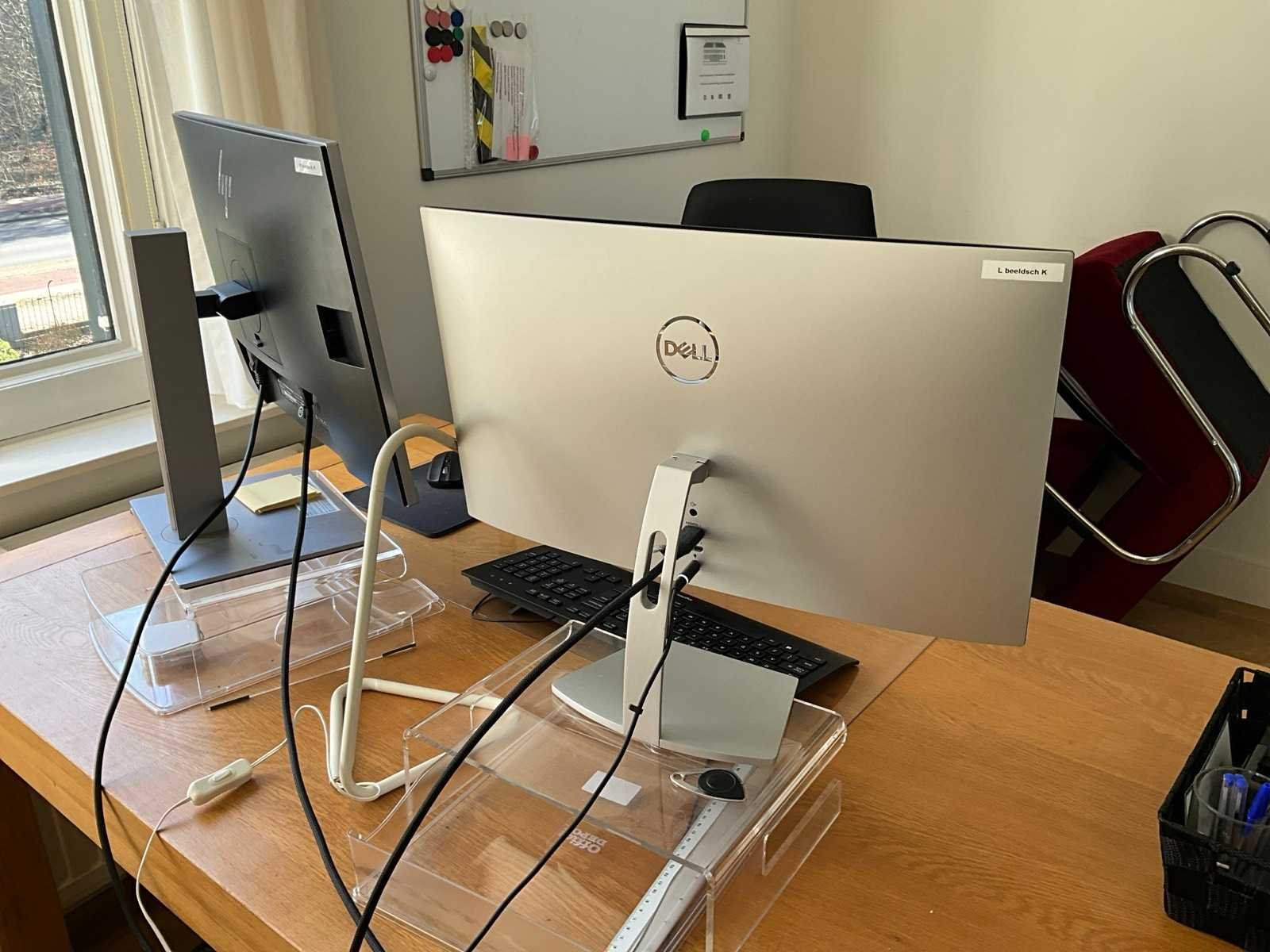 Inclusief 2x ladeblok, kasten en HP laserjetprinter, beeldschermen en kantoorgerief Lengte: 160cm Breedte: 90cm Hoogte: 76cm