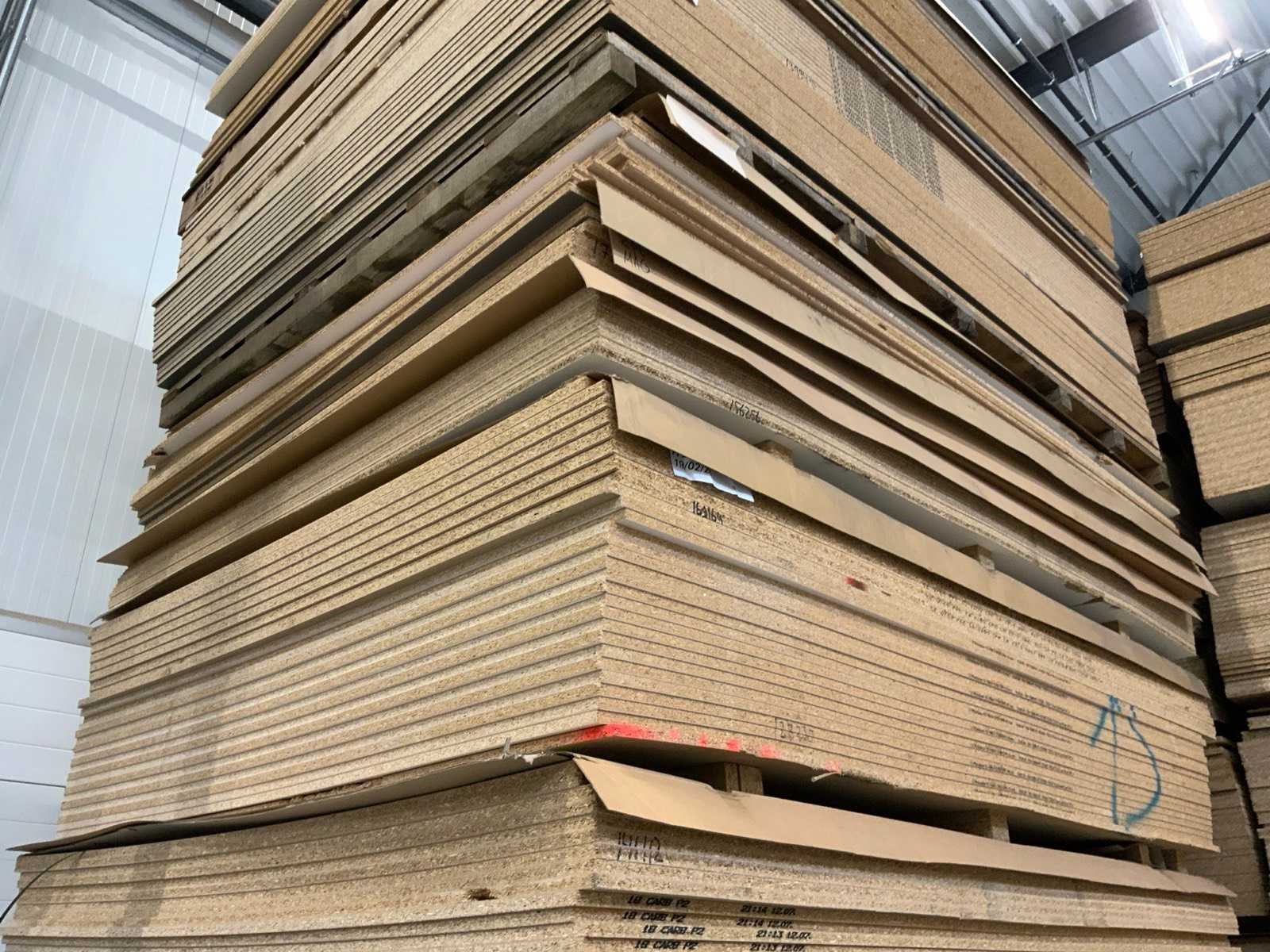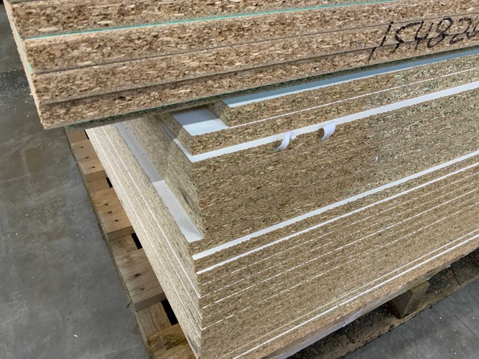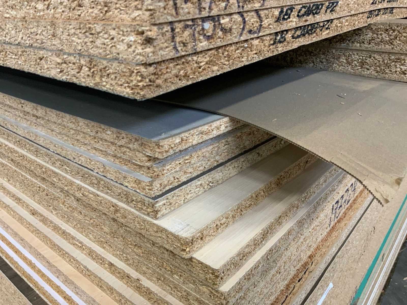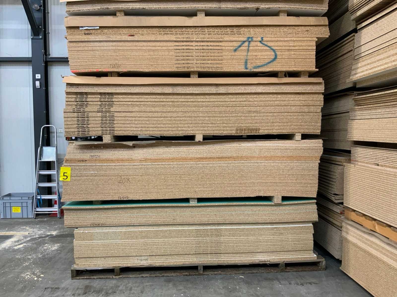 Platen zijn ca 2800x2070x20mm; circa 210 platen;diverse soorten; afmetingen kunnen afwijken; decoratie spaanplaat; sommige dubbelzijdig gelamineerd; past in 1 tautliner; 7 pakken; stapel met gele sticker nummer 5;