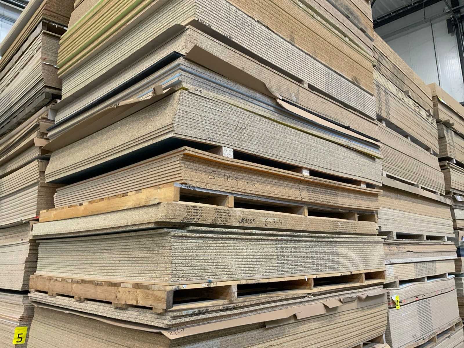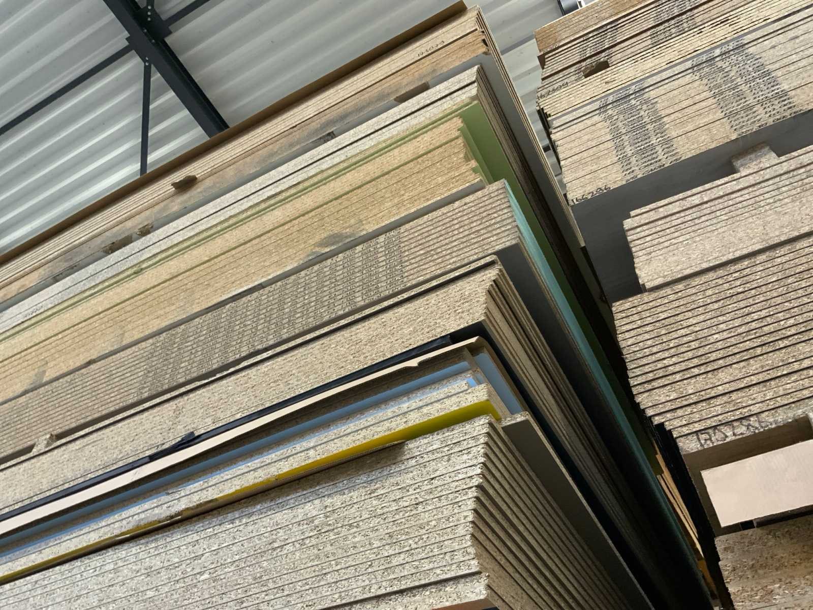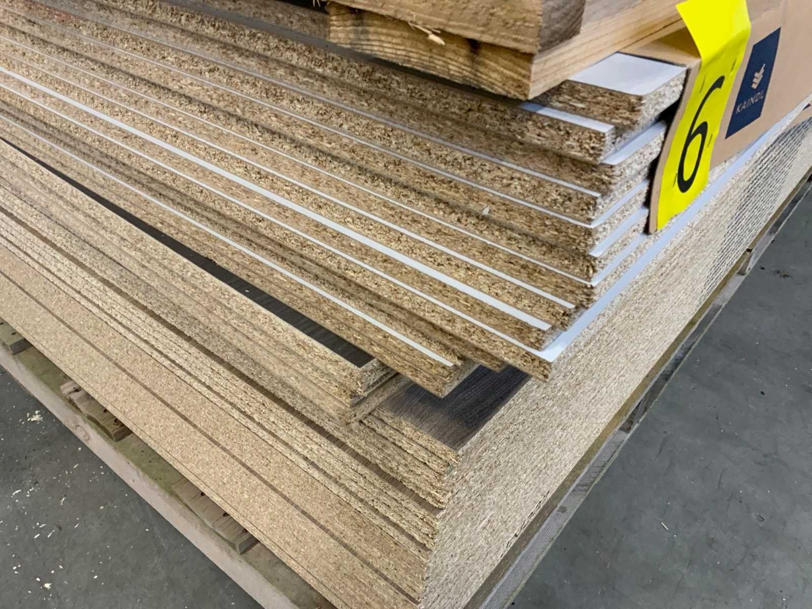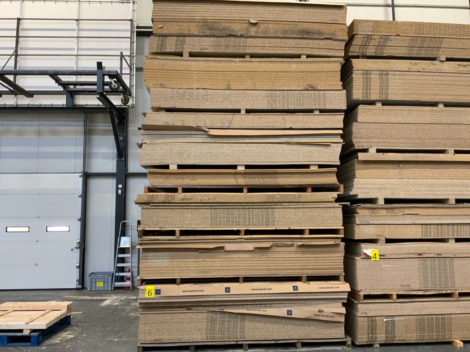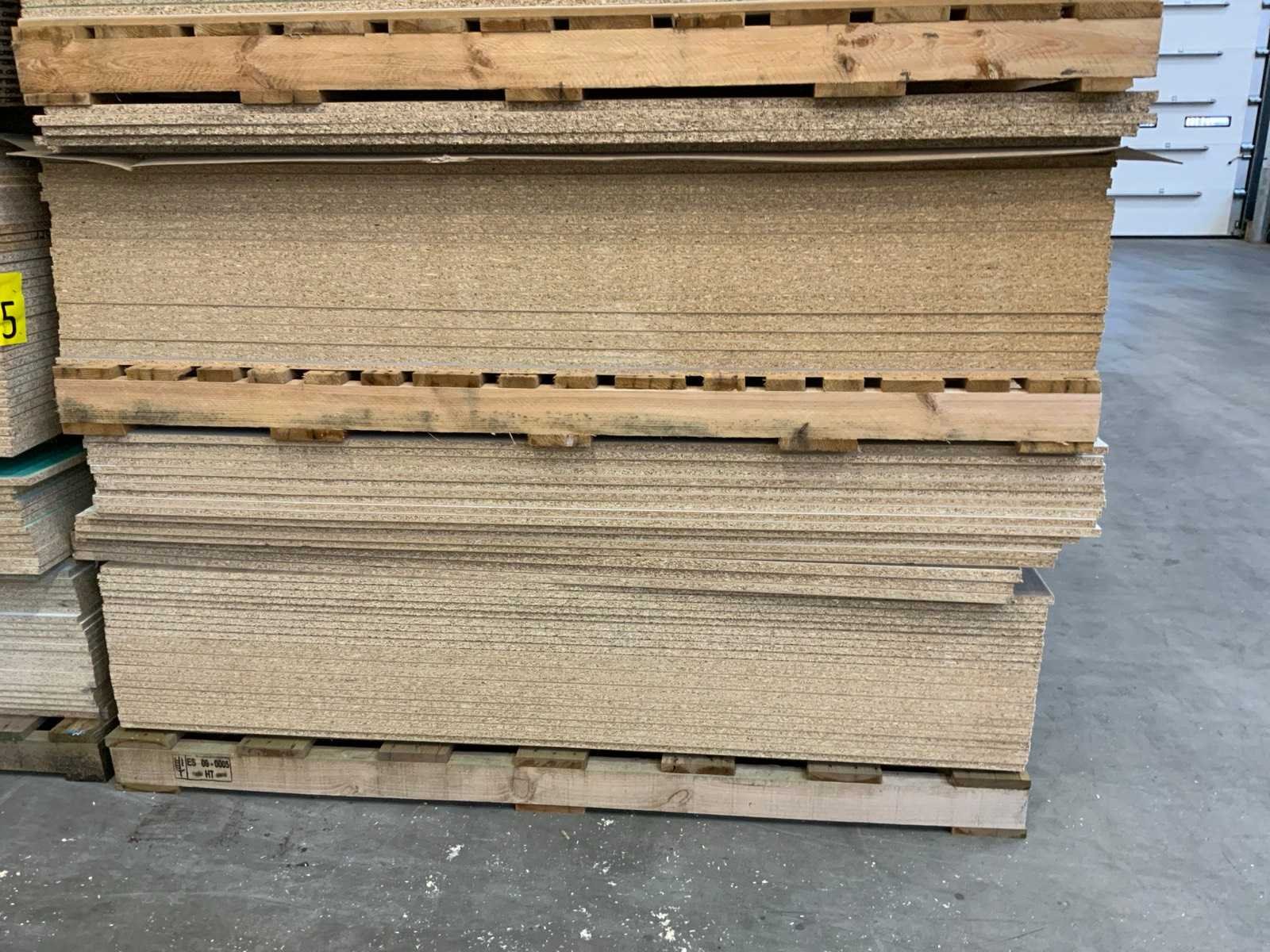 Platen zijn ca 2800x2070x20mm; circa 230 platen;diverse soorten; afmetingen kunnen afwijken; decoratie spaanplaat; sommige dubbelzijdig gelamineerd; past in 1 tautliner; 7 pakken; stapel met gele sticker nummer 6;