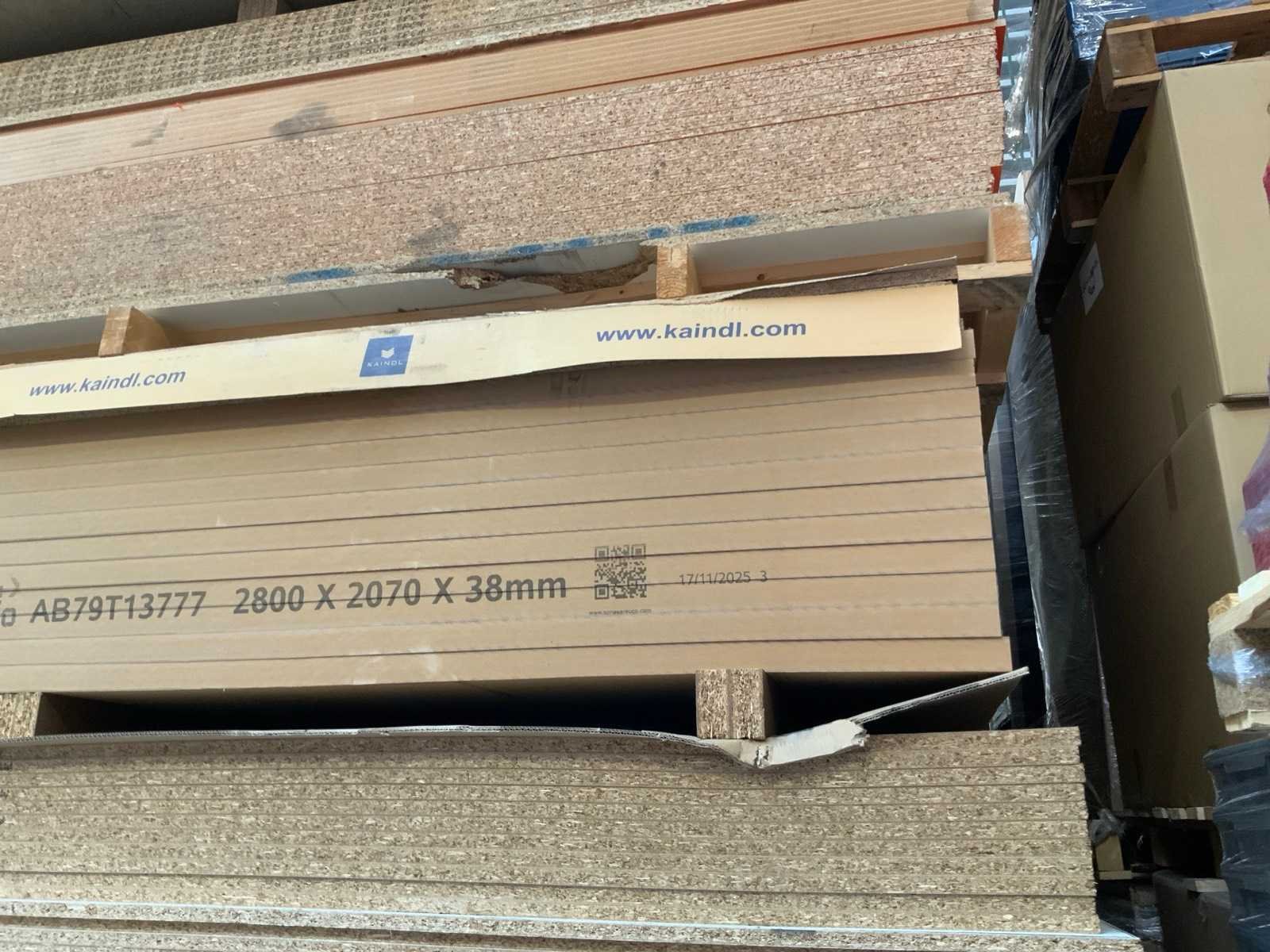 Platen zijn ca 2800x2070x20/28/38mm; afmetingen kunnen afwijken; decoratie spaanplaat; sommige dubbelzijdig gelamineerd; past in 1 tautliner; 8 pakken; stapel met gele sticker nummer 8;