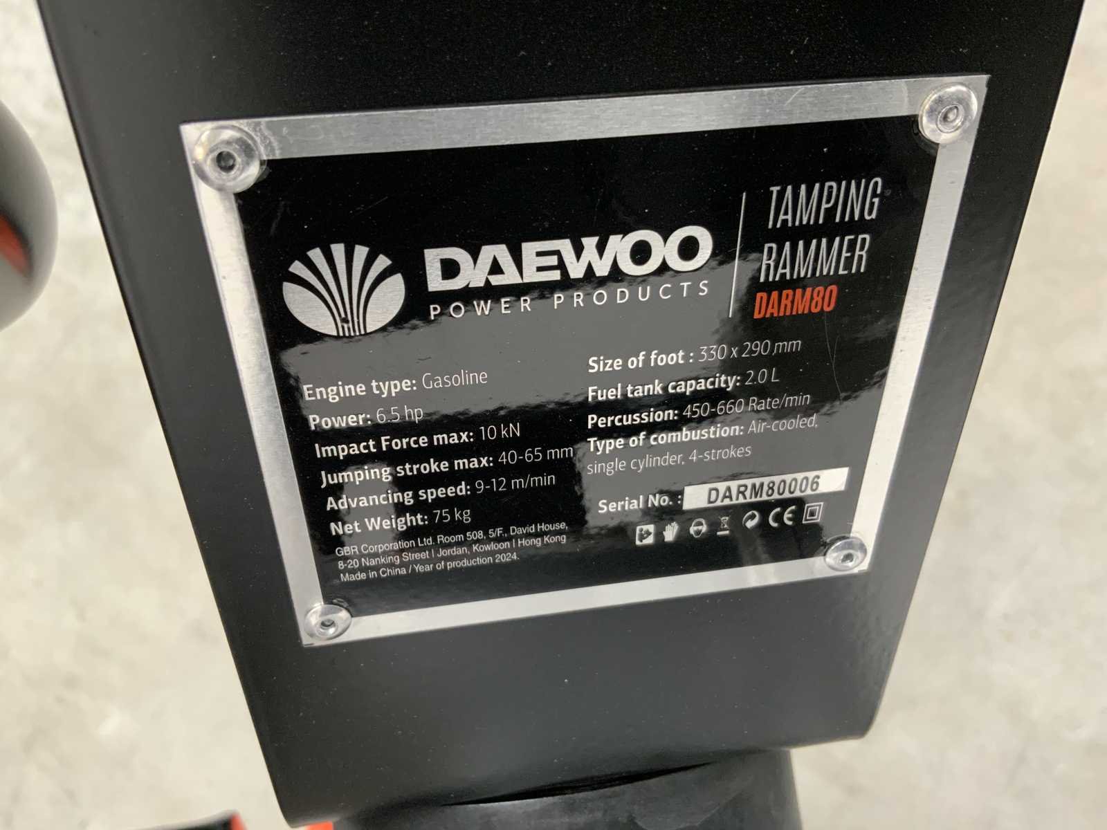 Ongebruik; in verpakking; 6.5PK; jumping stoke Max 40-65mm; aircooled; 2.0L tank; advancing speed 9-12m/min; 6528 Merk: Daewoo Type: DARM80 Bouwjaar: 2025 Grondplaat afm. l: 330mm Grondplaat afm. b: 290mm Centrifugale kracht: 10kN Merk motor: Loncin Brandstof: benzine Eigen gewicht: 62kg Totale afmeting L: 750mm Totale afmeting Breedte: 480mm Totale afmeting Hoogte: 1080mm
