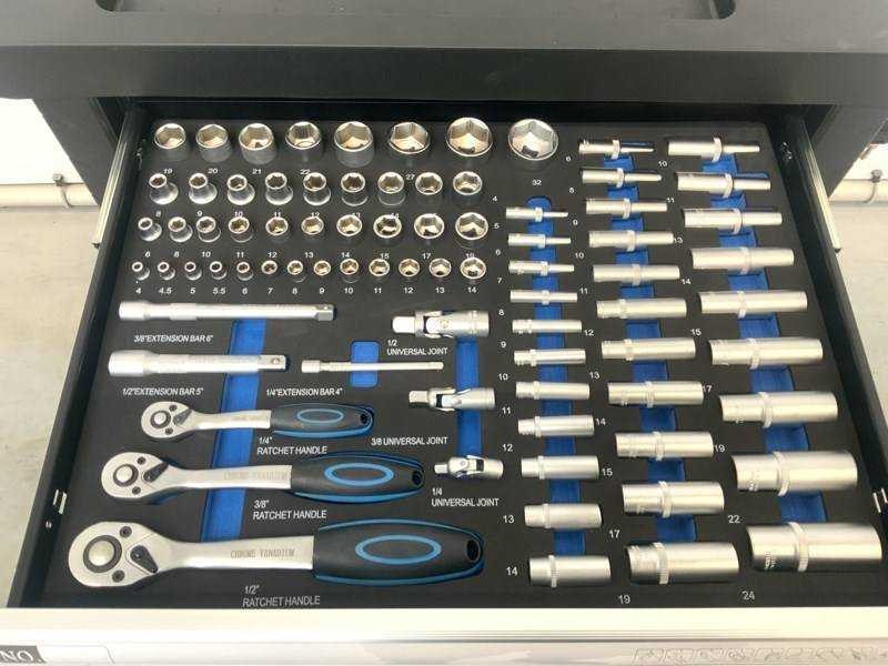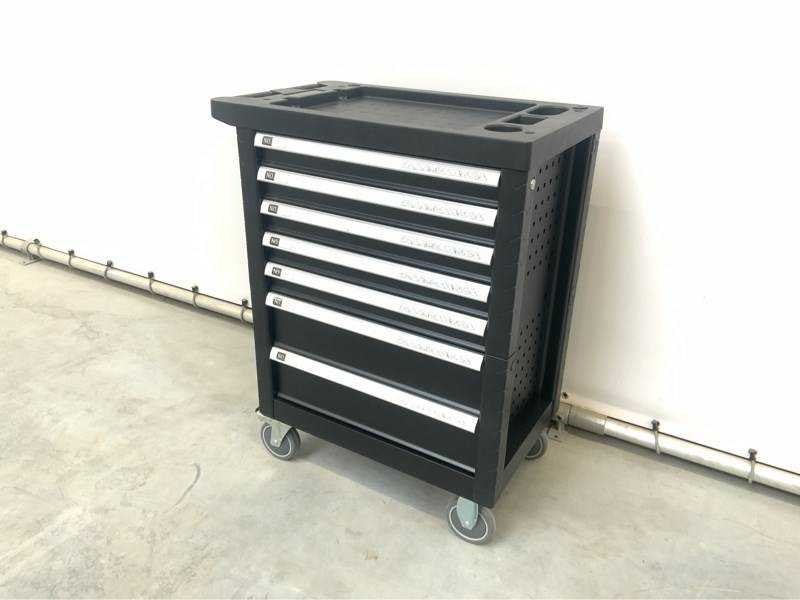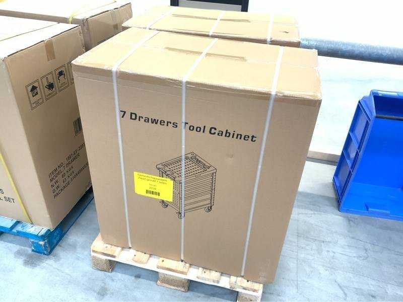 250-delig v.v. 2 zwenkwielen; ongebruikt in doos; 2238; Aantal laden: 7 Met inhoud: true Totale afmeting L: 770mm Totale afmeting Breedte: 460mm Totale afmeting Hoogte: 980mm