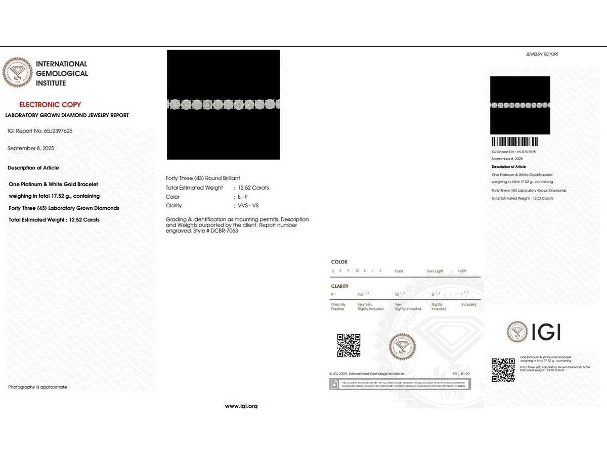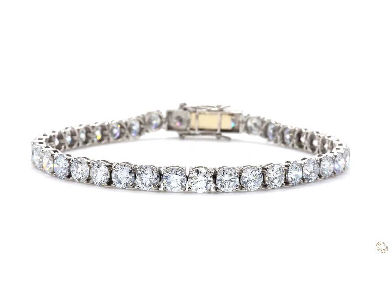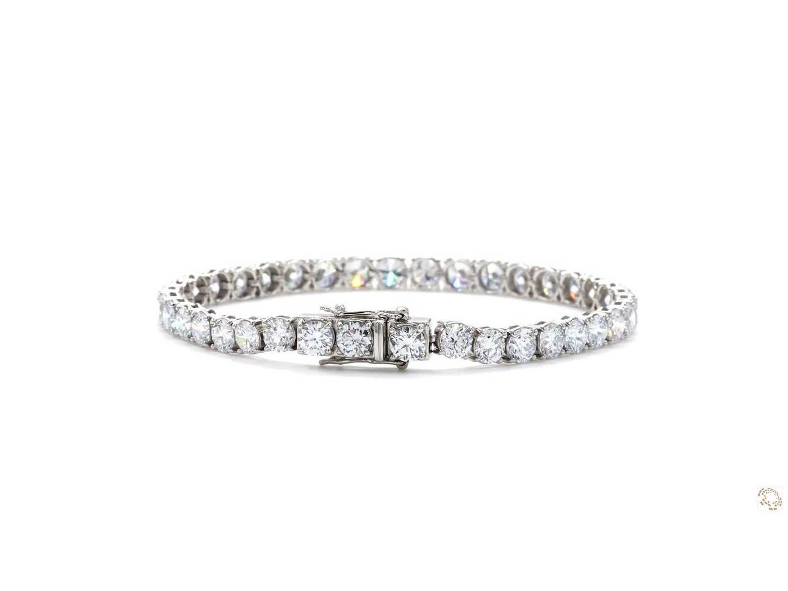 Platinum950 armband met 18K witte goud sluiting Lang - 19,3 cm Carat Gewicht - 12,52 Ct. Totaalgewicht - 17,52 gram Vorm - Rond met briljant snede Kleur E - F Helderheid - VVS - VS Een prachtige armband met IGI-certificaat NO 65J2397625 Bezichtiging op afspraak Materiaal: Platina Certificaat: Ja Lage schatting: 18700€