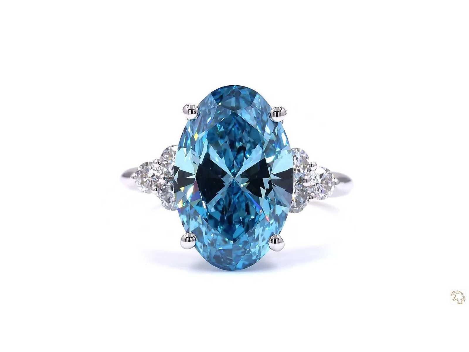 Exclusieve 18K witte goudring Ringmaat - 54 EU / 14 IT / 6,75 US Rapportnummer IGI: LG689506800 Vorm: Ovaal met heldere snede Karaatgewicht van de hoofdsteen: 5,21. Kleur: Fancy Vivid Bleu Helderheid: VS1 Symmetrie: uitstekend Omringende stenen - 0,62 karaat (8 stuks) Total Carat - 5.83 Totaal gewicht van de ring: 4,226 gram Bezichtiging op afspraak Materiaal: Witgoud Ringmaat : 54 Certificaat: Ja Lage schatting: 13900€