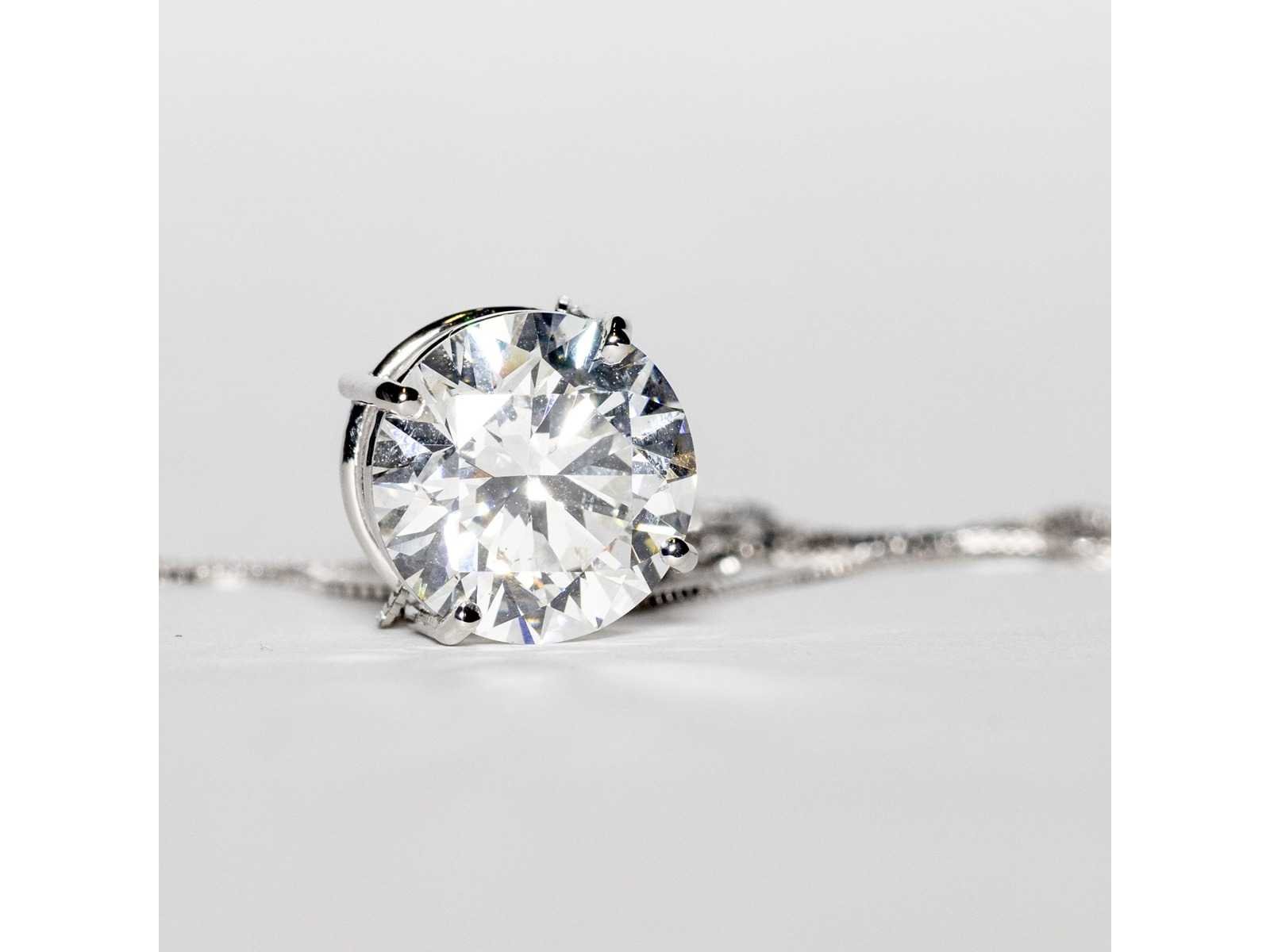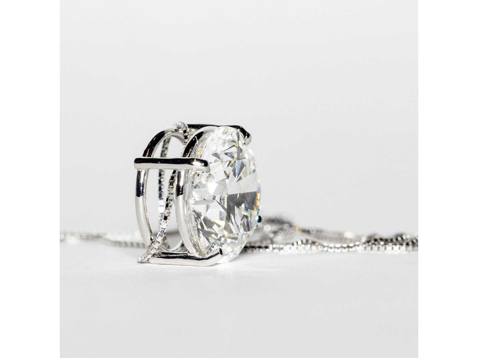Hanger van 18KT witgoud Diamantvorm: rond briljant Karaat: 5,02 ct Kleur: F Fluorescentie: Geen Zuiverheid: VS1 Bezichtiging op afspraak Materiaal: Witgoud Certificaat: Ja Lage schatting: 10600€