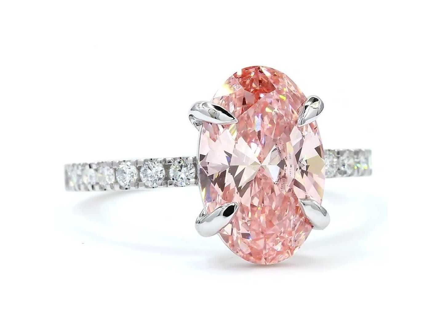 Exclusieve 18K witgouden ring Ringmaat - 55 EU / 15 IT / 7.25 US Rapportnummer IGI: LG733584099 Totaal Carat - 3,29 Ct. Vorm: Ovaal Brilliant Gewicht van de hoofdsteen: 3,00 Ct. Kleur: Fancy Vivid Pink Helderheid: VS1 Symmetrie: uitstekend Omringende stenen - 0,29 (19 stuks) Bezichtiging op afspraak Materiaal: Witgoud Ringmaat : 55 Certificaat: Ja Lage schatting: 7900€