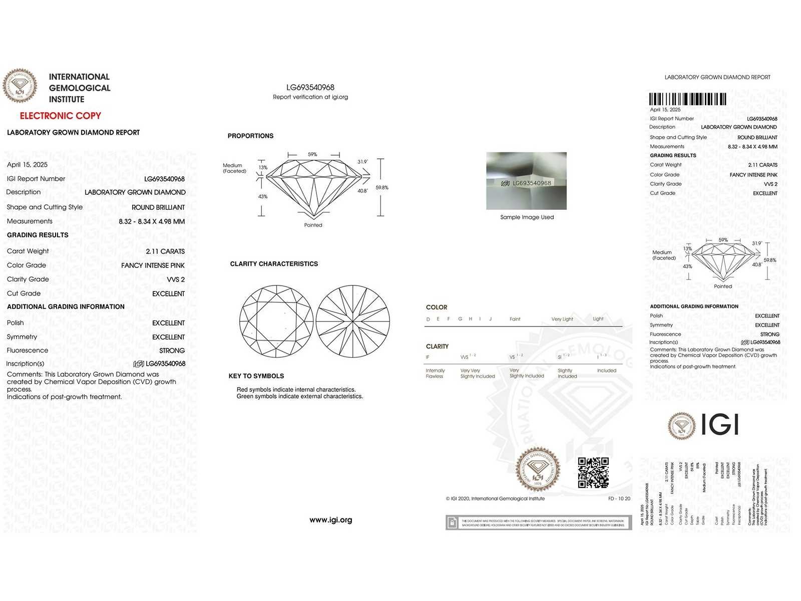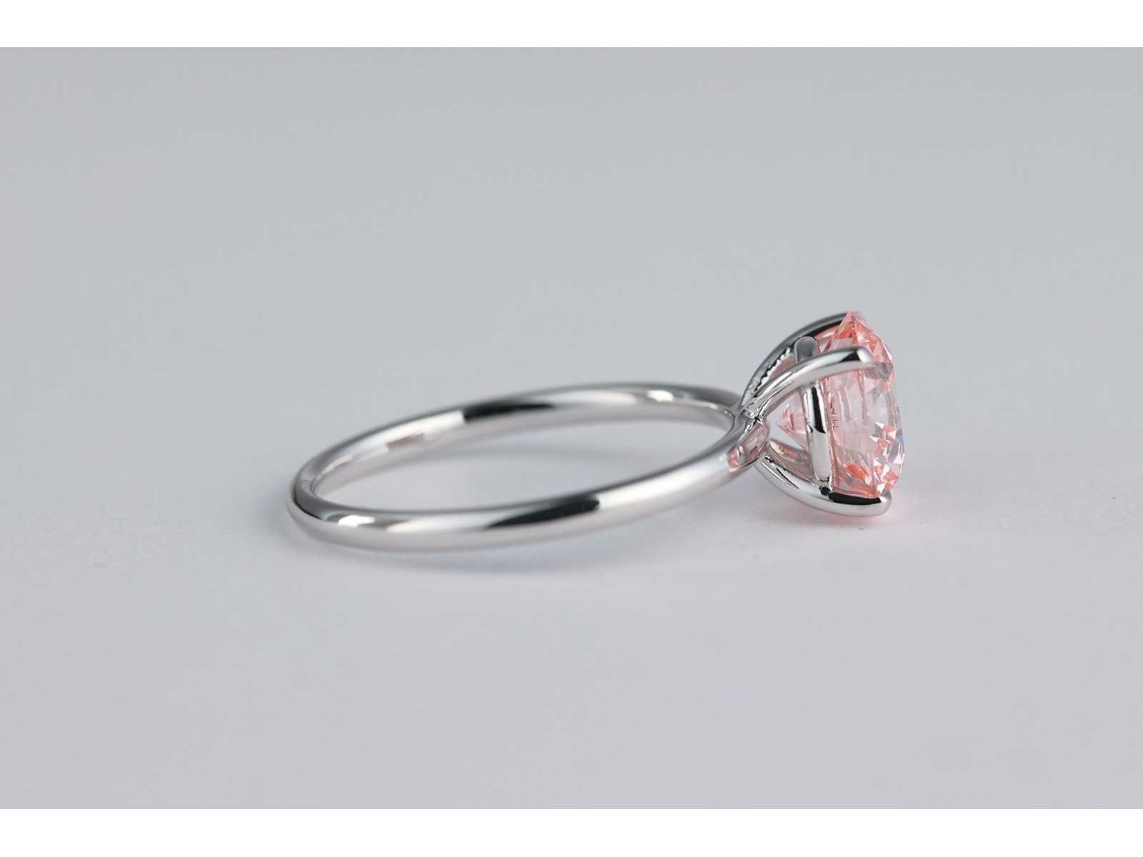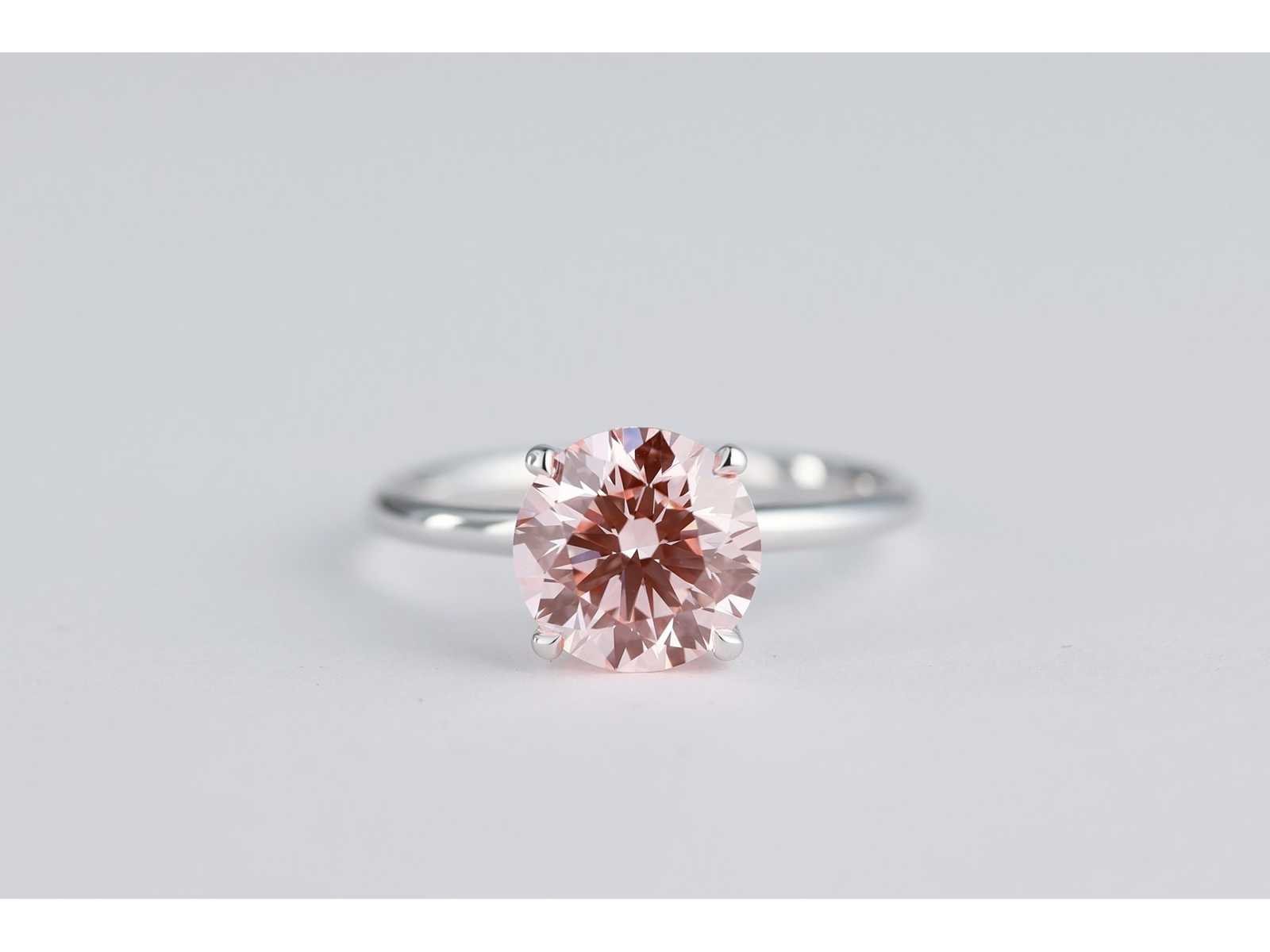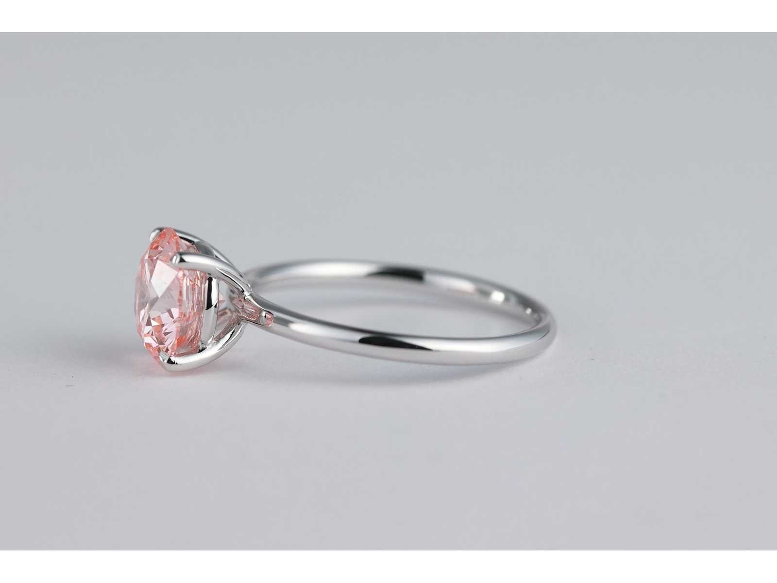 Vorm: Rond schitterend Gewicht: 2,11CT Kleur: Chique intens roze Helderheid: VVS2 uitstekend Symmetrie: uitstekend Fluorescentie: Sterk Laser Inscription IGI: LG693540968 Ringgewicht: 2,25 g. Witgoud Zuiverheid: 14 karaat (585) Bezichtiging op afspraak Materiaal: Witgoud Ringmaat : 53 Certificaat: Ja Lage schatting: 4300€