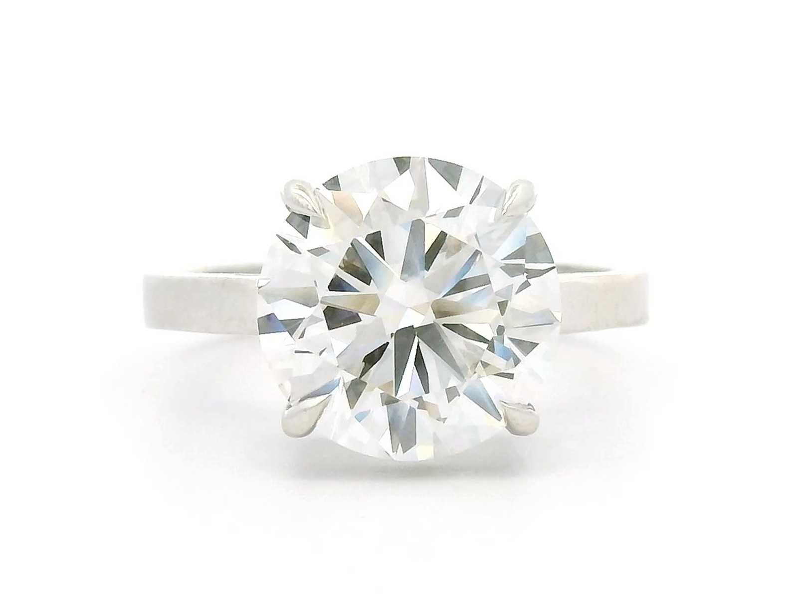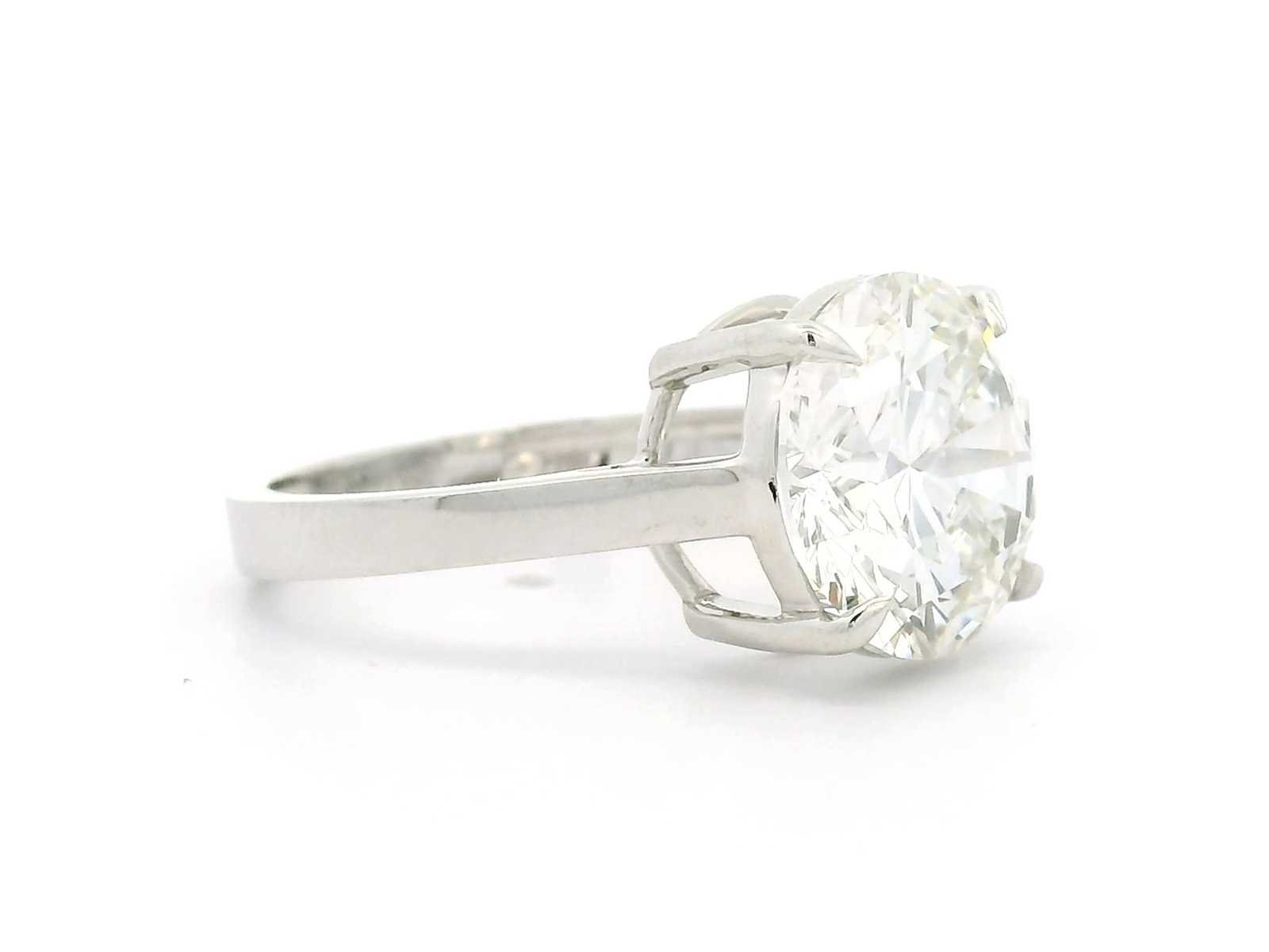 Exclusieve 18K witgouden ring 57 EU / 17 IT / 8 US Vorm: Rond Gewicht van de hoofdsteen: 5,00 ct Kleur: F Duidelijkheid: VS1 Snit: Briljant Symmetrie: Uitstekend Fluorescentie: Geen Totaal karaatgewicht - 5,00 karaat Bezichtiging op afspraak Materiaal: Witgoud Ringmaat : 57 Certificaat: Ja Lage schatting: 11900€