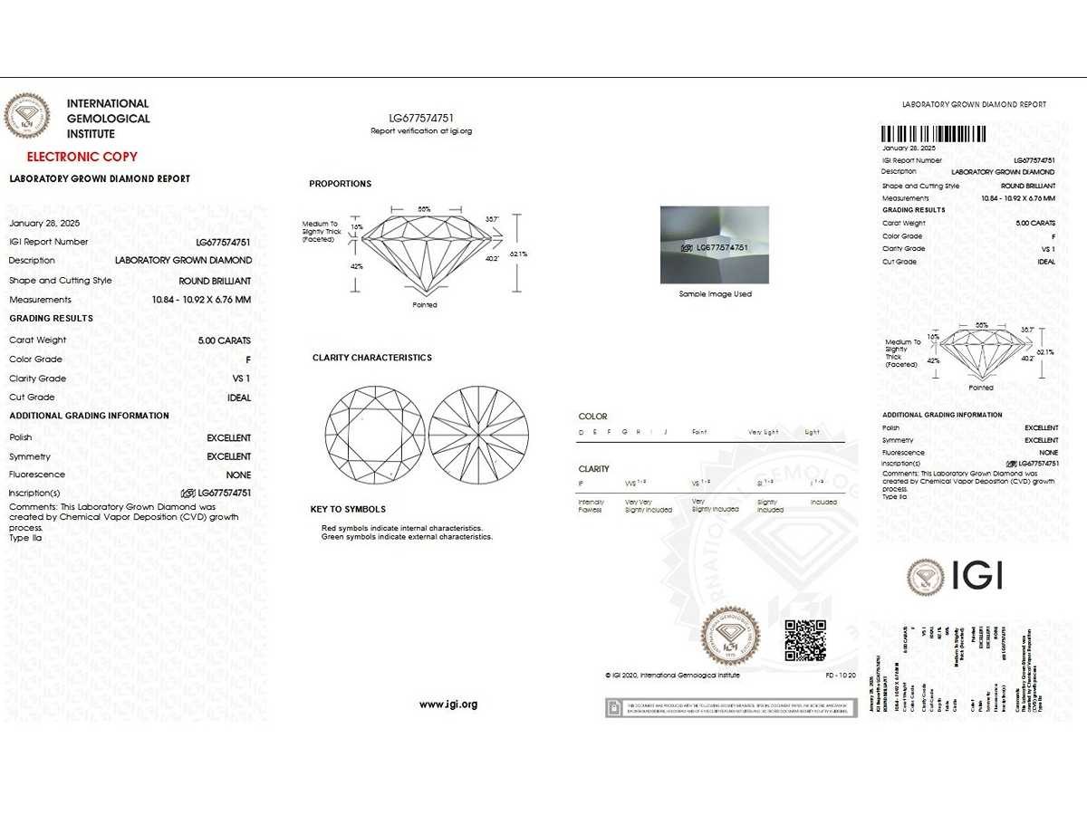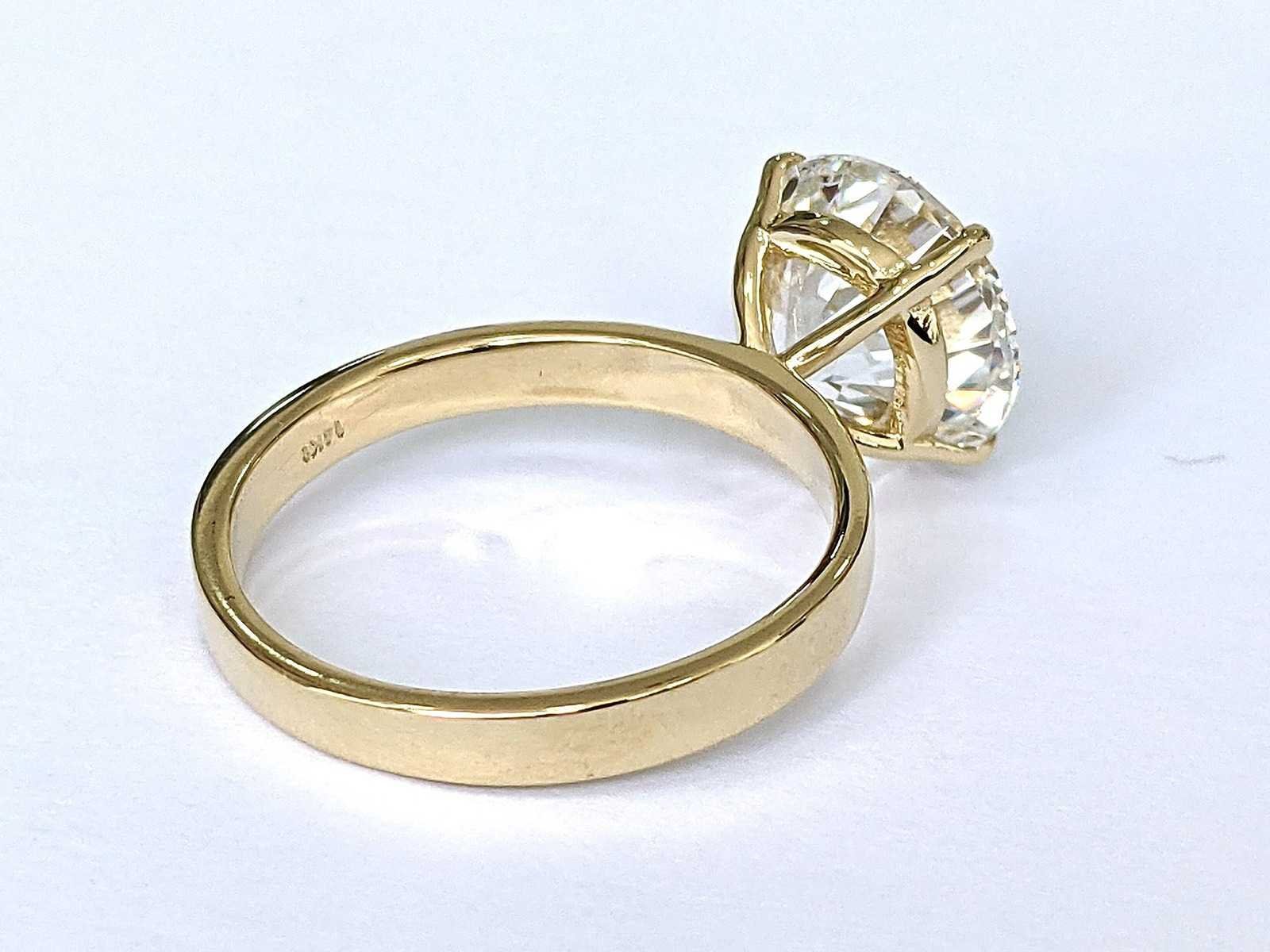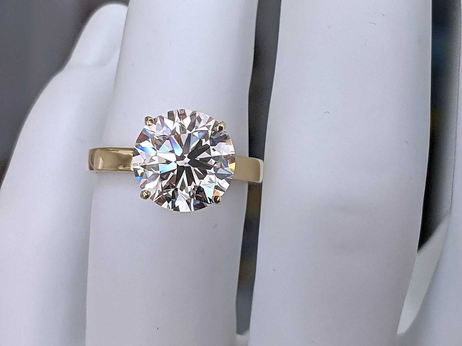 Ringmaat: 56 (EU) / 16 (IT) / 7 ½ (VS) Slijpvorm: Rond Briljant Karaat: 5,00 karaat Kleur: F Helderheid: VS1 Bezichtiging op afspraak Materiaal: Geelgoud Ringmaat : 56 Certificaat: Ja Lage schatting: 12900€