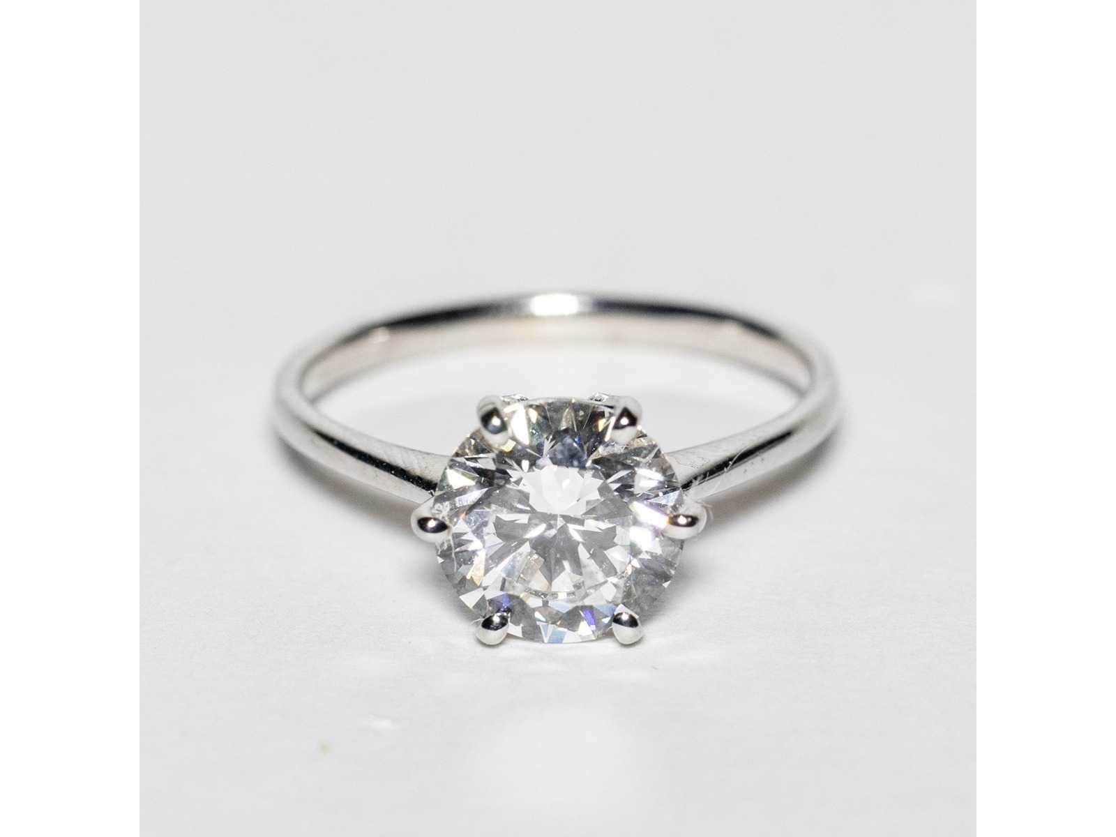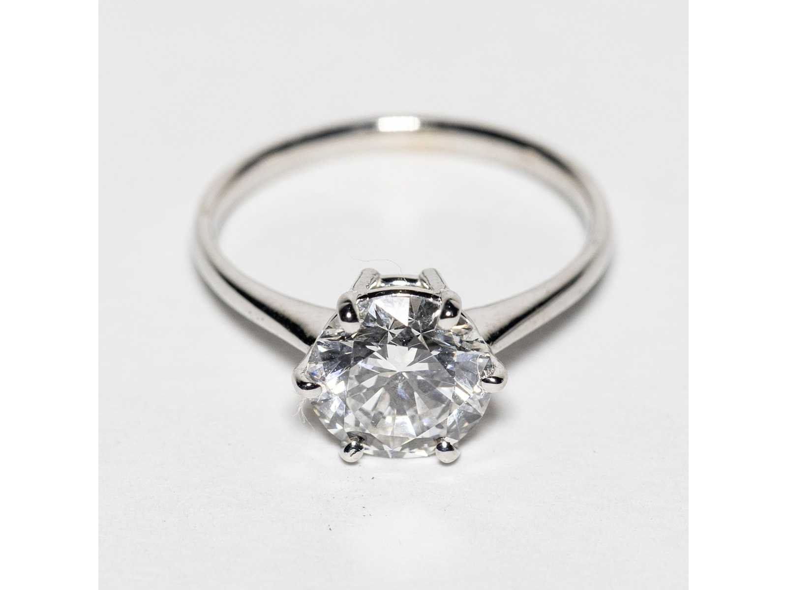 Laboratoriumrapport IGI: LG754575449 Witgouden ring 14KT Maat ring 14/54/6-3/4 Diamantvorm: ronde briljant - 3,04 ct Kleur: F Helderheid VVS2 - uitstekend Symmetrie: uitstekend Bezichtiging op afspraak Materiaal: Witgoud Ringmaat : 54 Certificaat: Ja Lage schatting: 4800€