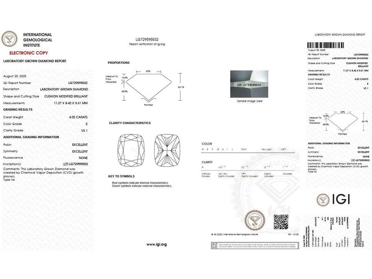 Exclusieve 18K witgouden ring Rapportnummer IGI: LG729595532 Total Carat - 4.32 Vorm: Ovaal Brilliant Gewicht van de hoofdsteen: 4,02 CT Kleur: E Helderheid: VS1 Snede: uitstekend Symmetrie: uitstekend Omringende steen - 0,30 karaat (32 stuks) Totaal karaatgewicht - 4,32 karaat Bezichtiging op afspraak Materiaal: Witgoud Ringmaat : 54 Certificaat: Ja Lage schatting: 7900€