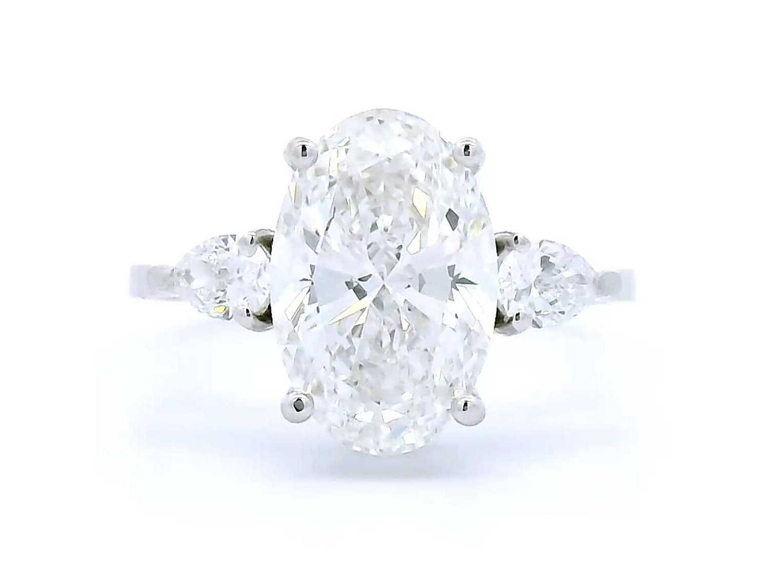 Exclusieve 14K witgouden ring Ringmaat - 55 EU / 15 IT / 7,25 US Rapportnummer IGI: LG737552129 Totaal karaatgewicht - 3,28 Ovaal briljant geslepen Gewicht van de hoofsteen: 3,01 CT Kleur: E Helderheid: VS1 Snede: uitstekend Symmetrie: uitstekend Omringende stenen - 0,27 (2 stuks) Bezichtiging op afspraak Materiaal: Witgoud Ringmaat : 55 Certificaat: Ja Lage schatting: 4800€