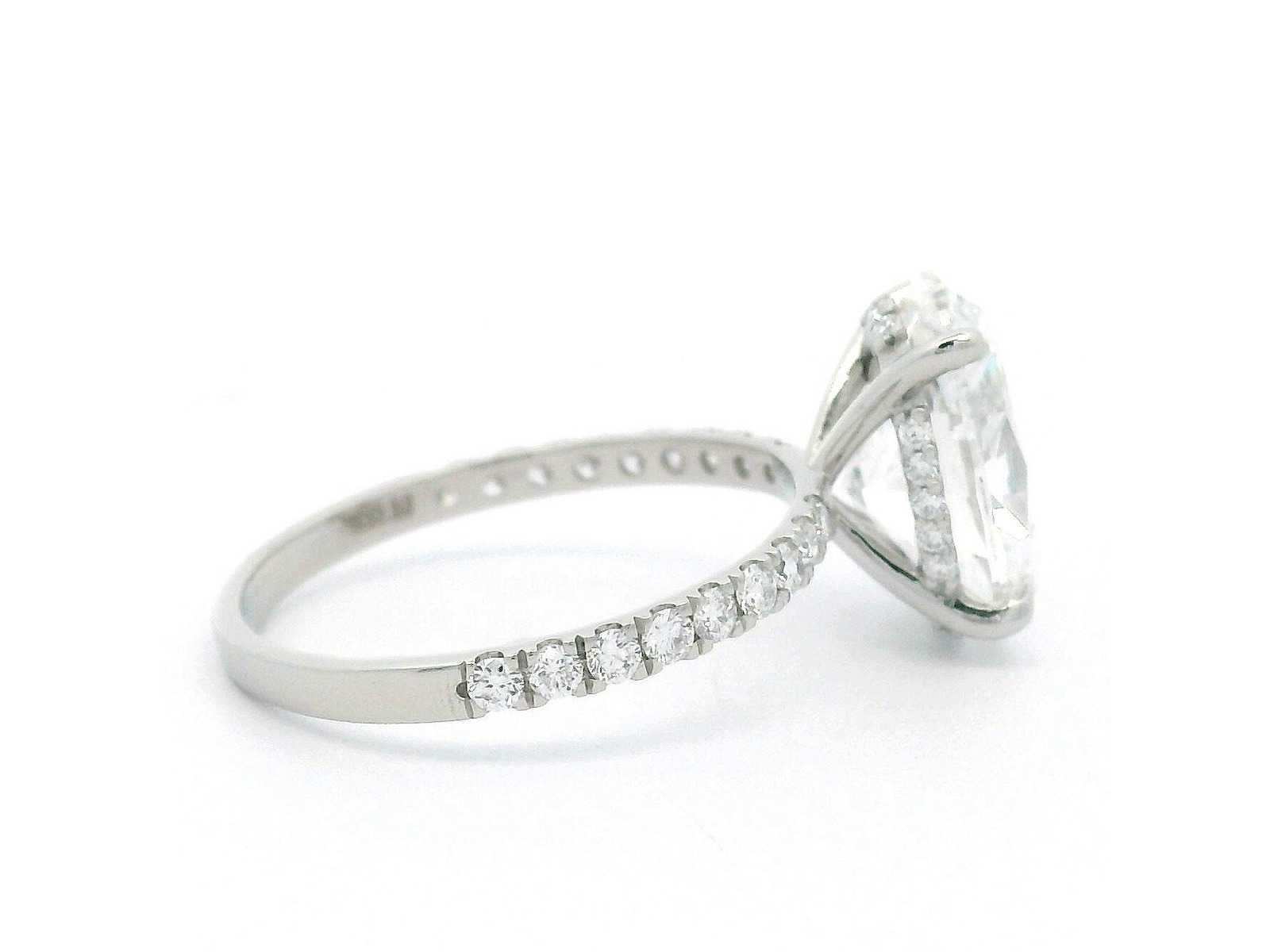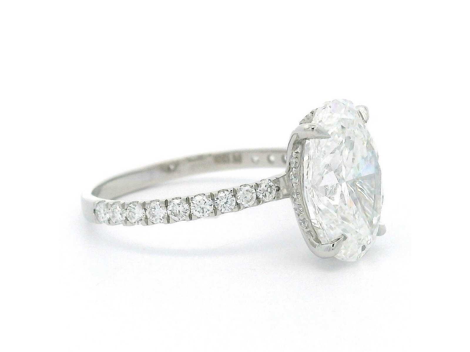 Exclusieve platina ring Totaal karaatgewicht - 4,50 karaat Vorm: Ovaal Briljant Gewicht van de hoofdsteen: 4,01 CT Kleur: E Duidelijkheid: VS1 Symmetrie: Uitstekend Fluorescentie: Geen Omringende stenen - 0,49 Karaat (34 Stuks) Bezichtiging op afspraak Materiaal: Platina Ringmaat : 57 Certificaat: Ja Lage schatting: 9800€