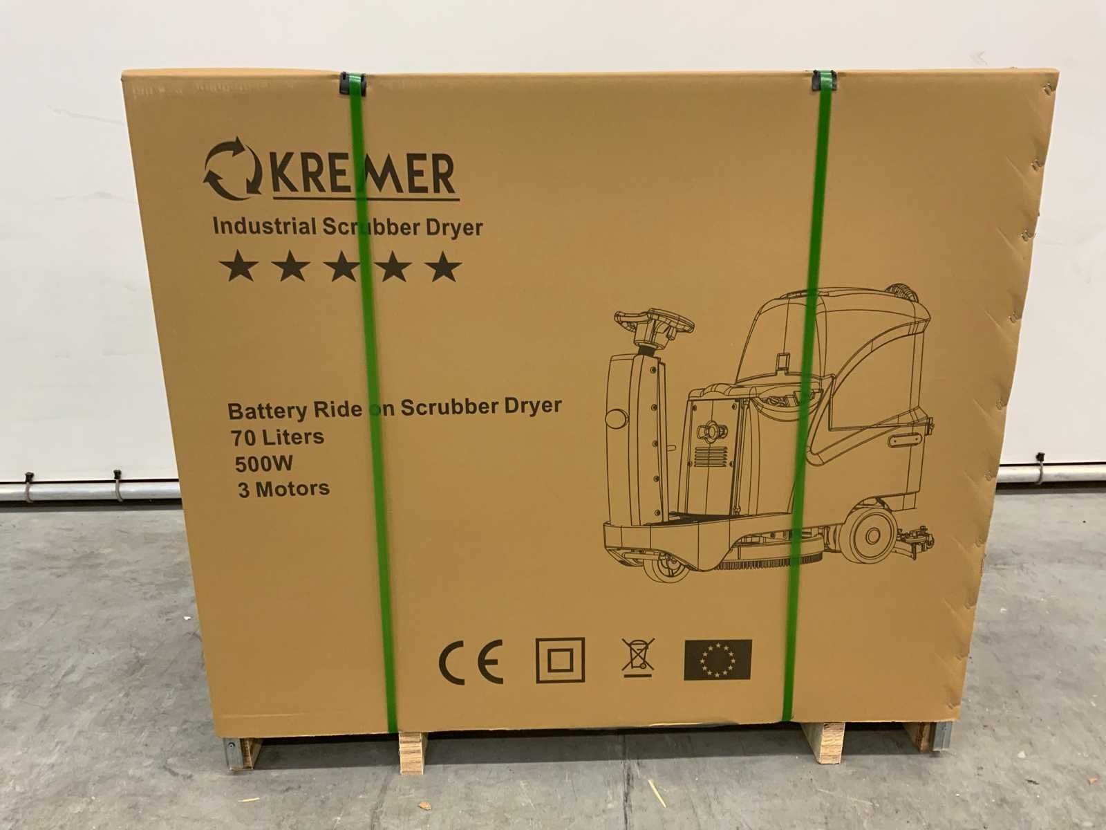 Batteries: 2 x 12 V, 100 Ah; Brush Speed: 170 rpm; Suction / Brush motor power: 500 W; Driving motor power: 300 W; Running Speed: 5.5km/h max; Recovery tank capacity: 70 L; Solution tank capacity: 70 L; Efficiency: 4500 m²/h; Brush diameter: 560 mm; Suction width: 800 mm; Cleaning width: 560 mm ;4866 Merk: Kremer Type: KR-FR70 Bouwjaar: 2025 Werkbreedte: 630mm Elektrisch: true Afgelezen urenstand: 0hr Accu lader: true Aansluiting: 24V Eigen gewicht: 220kg Totale afmeting L: 1310mm Totale afmeting Breedte: 620mm Totale afmeting Hoogte: 1080mm