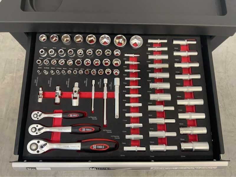 Werkblad; sleutel set; ongebruikt in verpakking; 4447; Merk: SG Aantal laden: 7 Met inhoud: true Totale afmeting L: 780mm Totale afmeting Breedte: 470mm Totale afmeting Hoogte: 965mm
