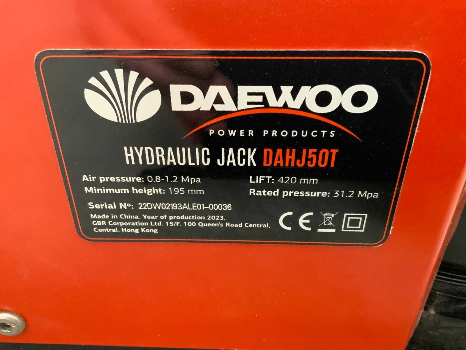 Max hoogte 420mm; min hoogte 195mm; 5635 Merk: Daewoo Type: 50T. DAHJ Bouwjaar: 2023 Capaciteit.: 50.00t Eigen gewicht: 52kg