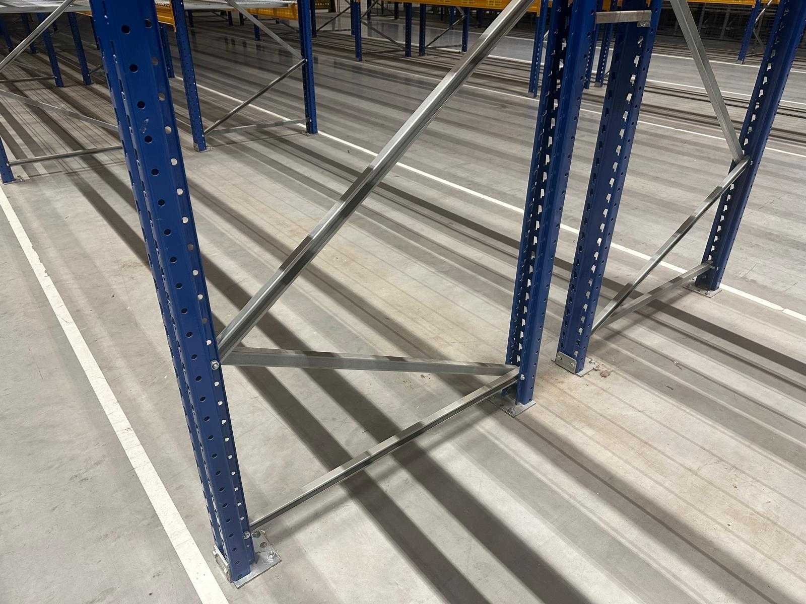 Gebruikte palletstelling; reeds gedemonteerd; gebundeld per pakket; 12 staanders 8450x1100x100mm; 80 liggers 3600x130mm; Zonder borgpennen; Zonder aanrijdbeveiliging. Merk: Jungheinrich Type: MPB Aantal secties: 11 Sectie afm. b: 3600mm Sectie diepte: 1100mm Sectie afm. h: 8450mm Aantal staanders: 12 Aantal liggers: 80 Demontabel: true