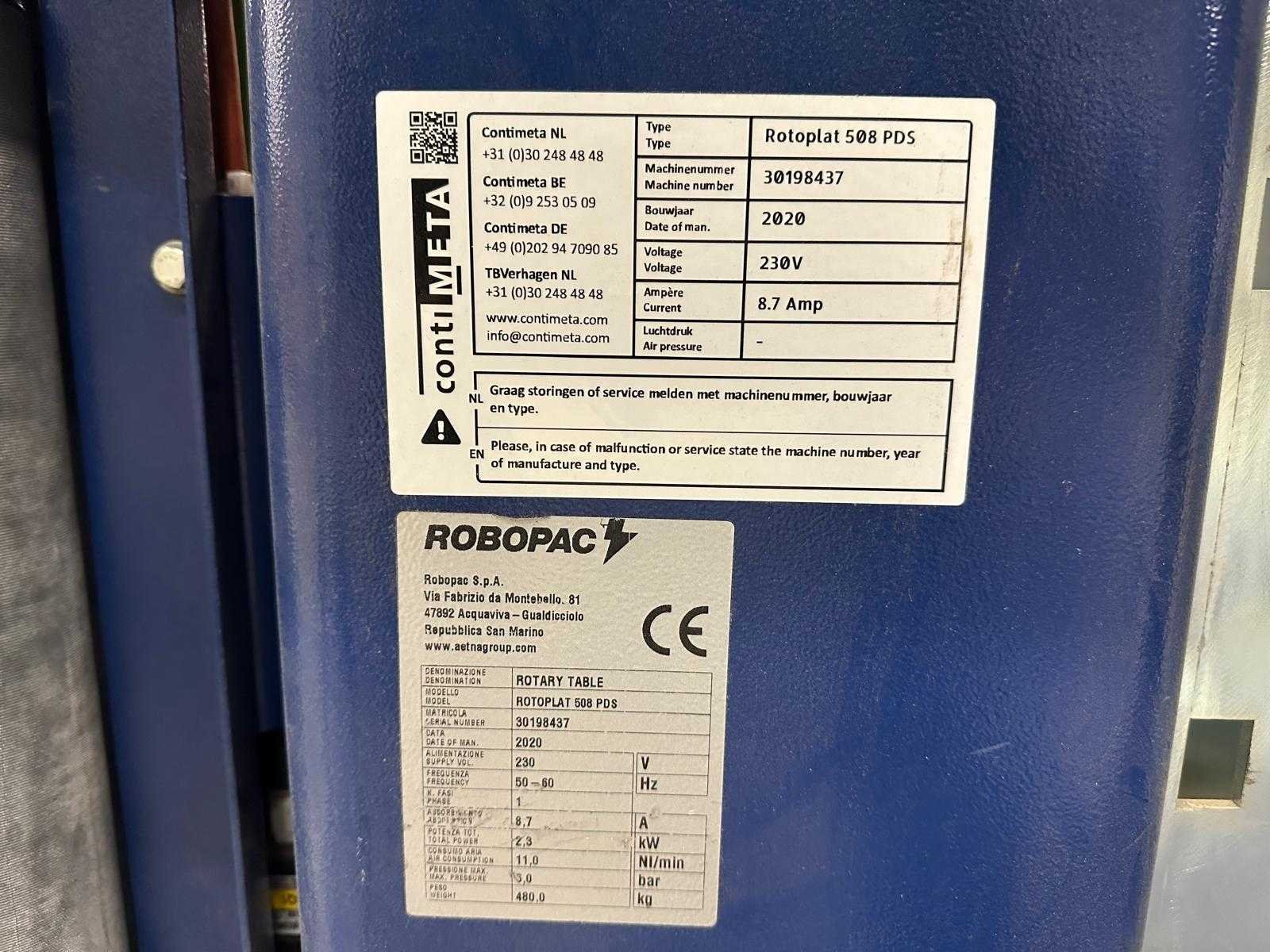 8.7A; 2,3Kw; gebruikt; Merk: Robopac Type: RotoPlat508 PDS Bouwjaar: 2020 Aansluiting: 230V Eigen gewicht: 420kg
