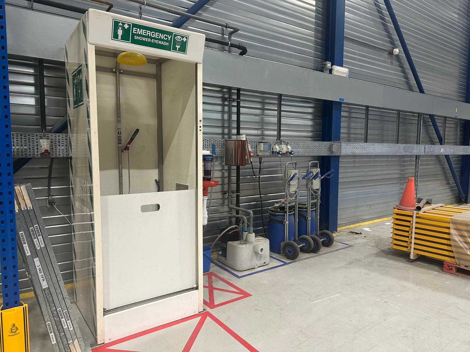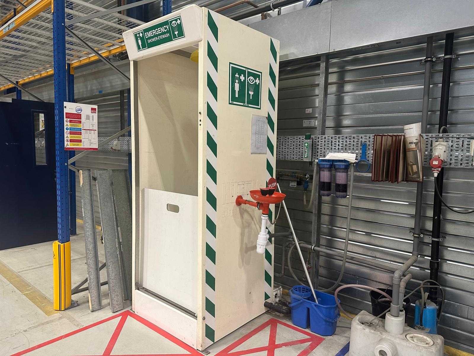 Eye wash station; Afmetingen: 90x90x240cm; gebruikt; Lengte: 90cm Breedte: 90cm Hoogte: 240cm