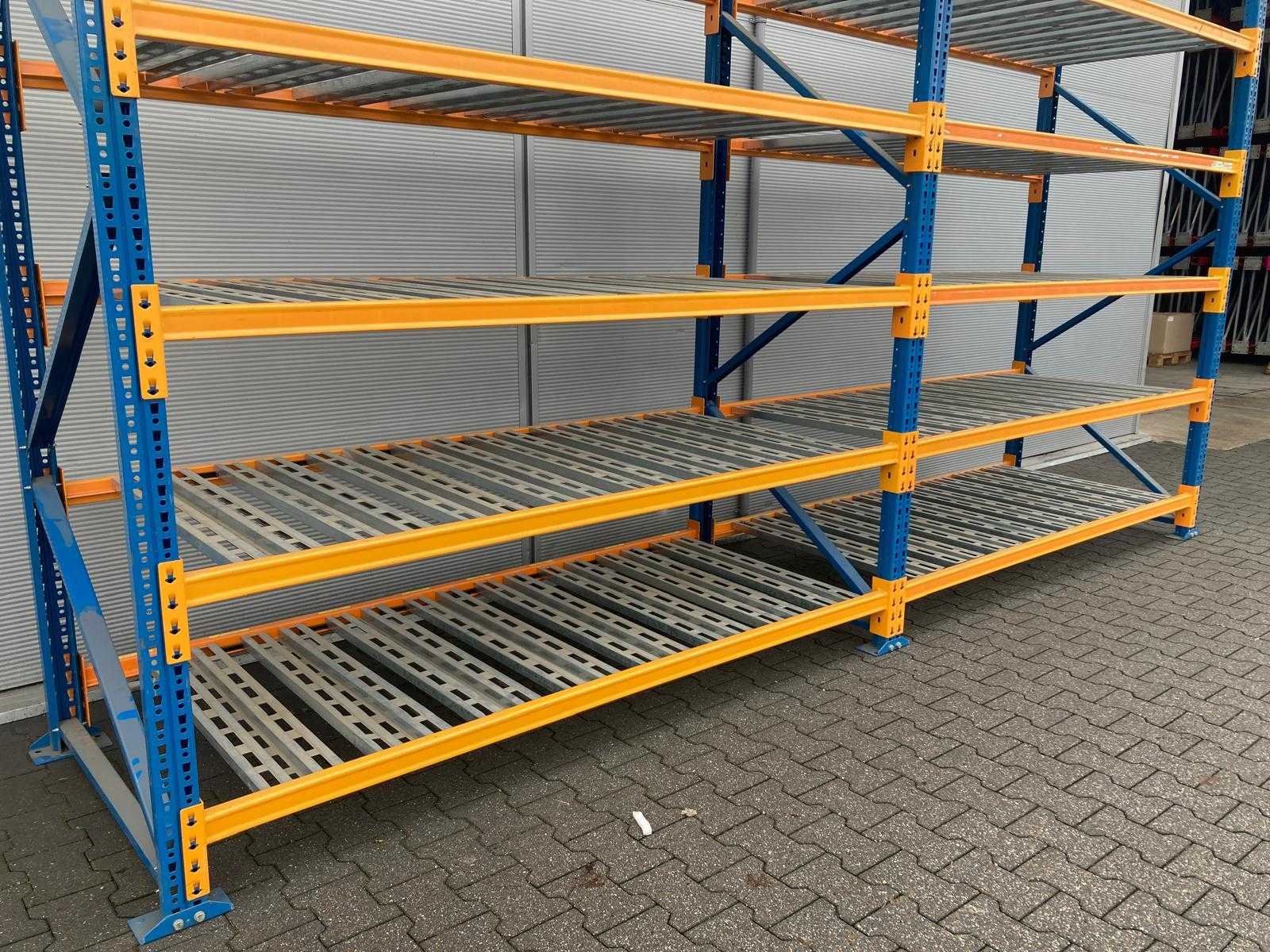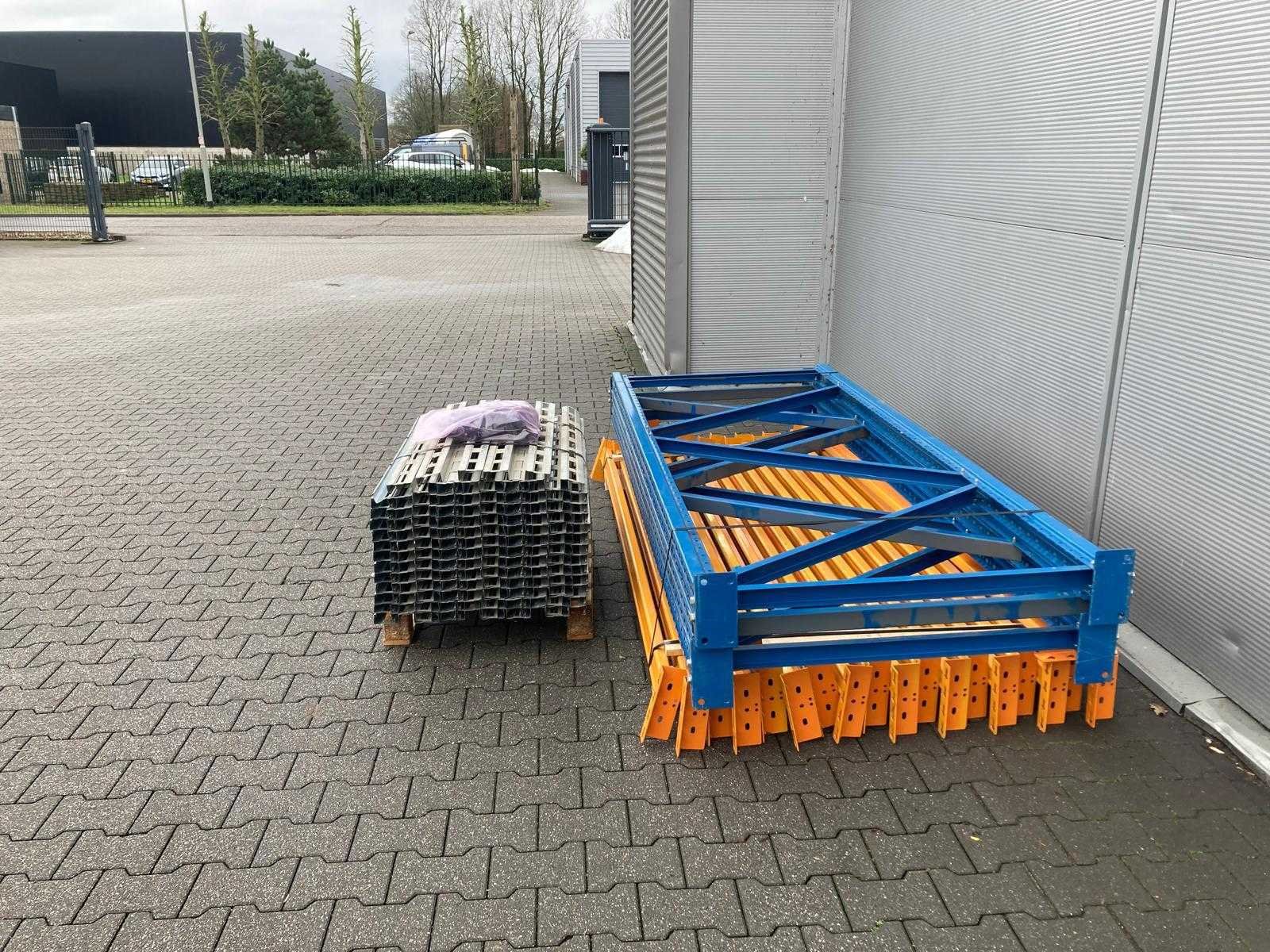 Light duty stelling; 3x staander 2700x980x800mm; 20x ligger 2200x600x35mm; gebundeld; gebruikt; 8013*3 / 8014*20 / 8185*10 Merk: Nedcon Aantal secties: 2 Sectie afm. b: 2200mm Sectie diepte: 980mm Sectie afm. h: 2700mm Aantal staanders: 3 Aantal liggers: 20