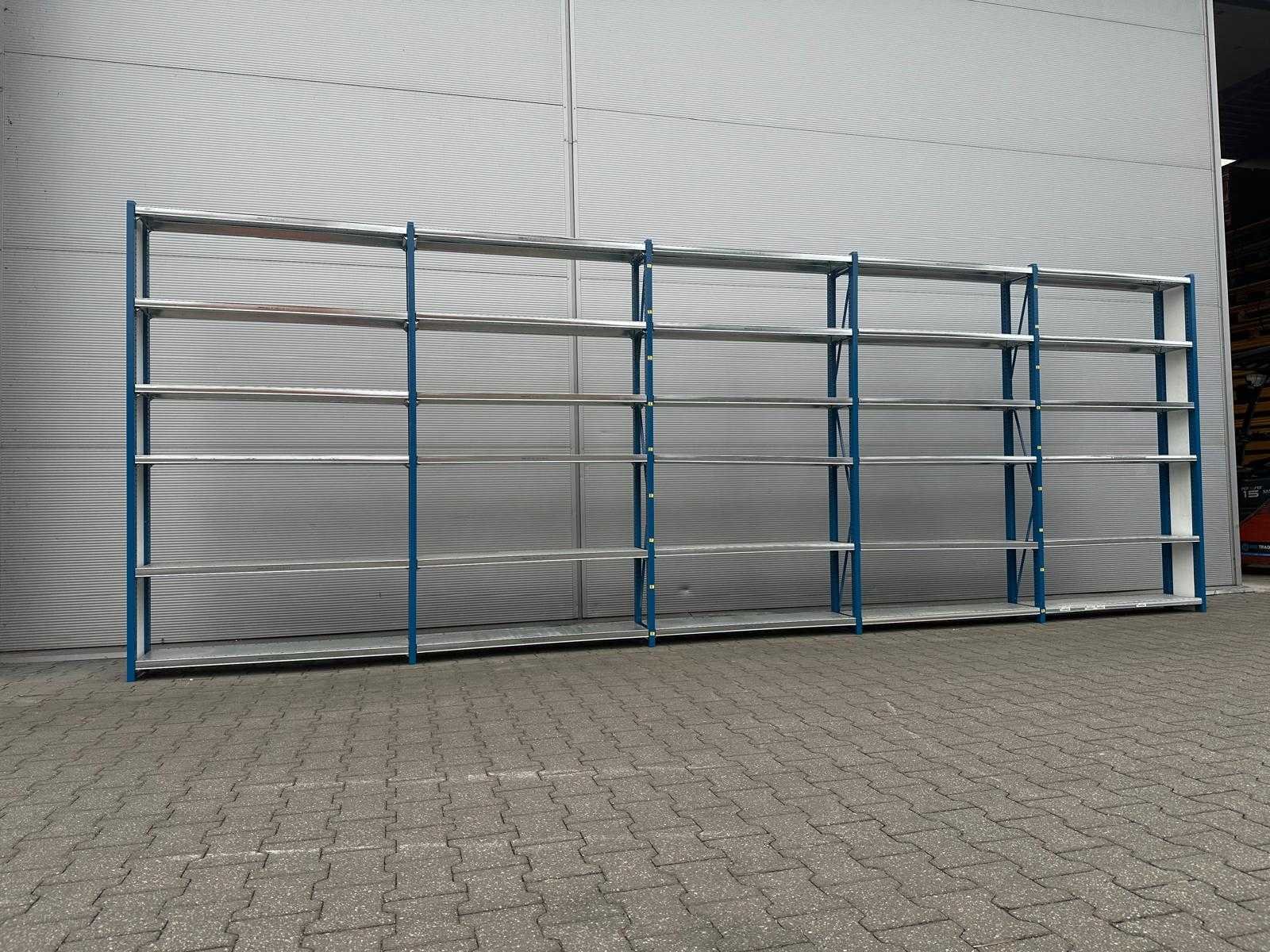 Gebundeld; Gebruikt; 6x staander 2200x300mm; 30x legbord 1200x300mm; 7806*6 / 7328*30 Merk: Nedcon Sectie afm. b: 300mm Sectie diepte: 1200mm Sectie afm. h: 2200mm Aantal staanders: 6 Aantal legborden: 30
