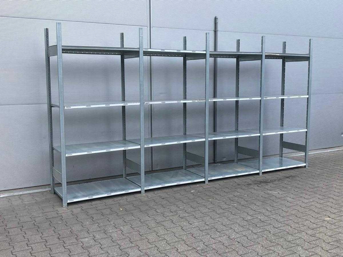 5x staander 2100x600mm; 16x legbord 1000x600mm; gedemonteerd; gebundeld; gegalvaniseerd; let op; staanders kunnen open of dicht zijn; 3375*5 / 3376*16 Merk: Dexion Aantal secties: 4 Sectie afm. b: 1000mm Sectie diepte: 600mm Sectie afm. h: 2100mm Aantal staanders: 5 Aantal legborden: 16