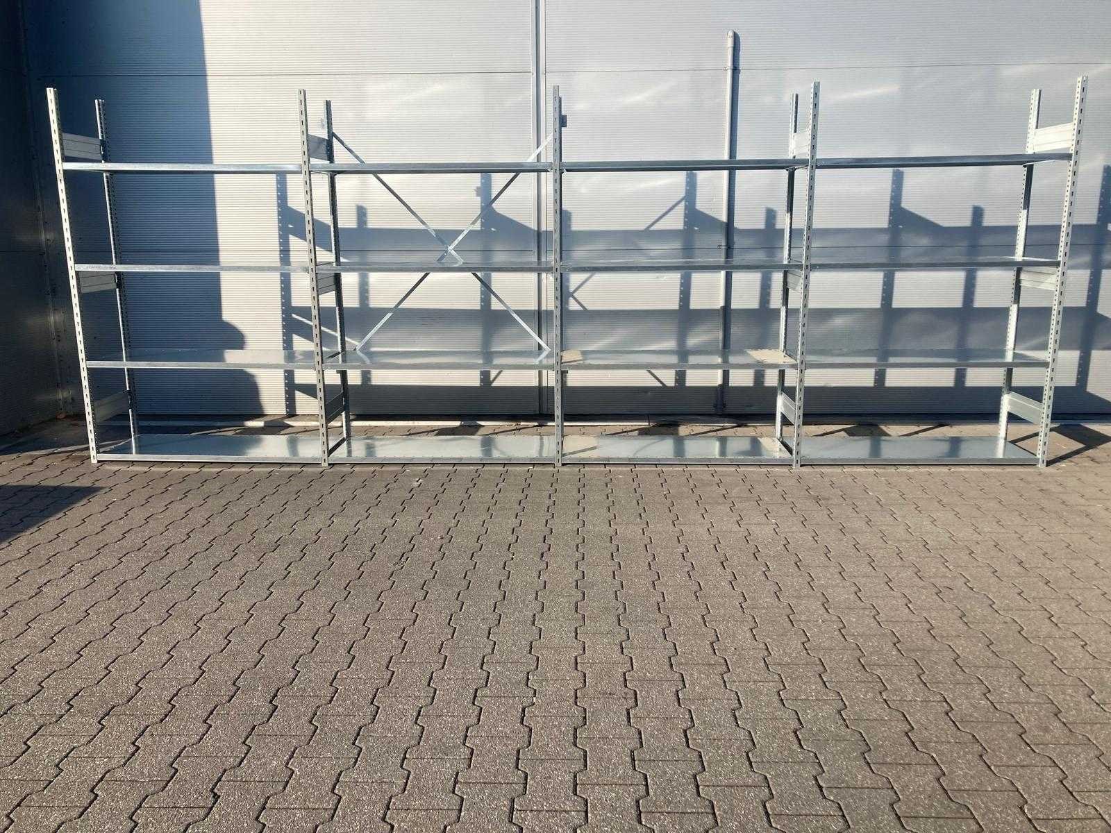 Ongebruikte Stow legbordstelling; wordt netjes gebundeld en transport klaar geleverd; zonder schoorset; Merk: Stow Type: ongebruikt Aantal secties: 9 Sectie afm. b: 965mm Sectie diepte: 400mm Sectie afm. h: 2000mm Aantal staanders: 10 Aantal legborden: 50