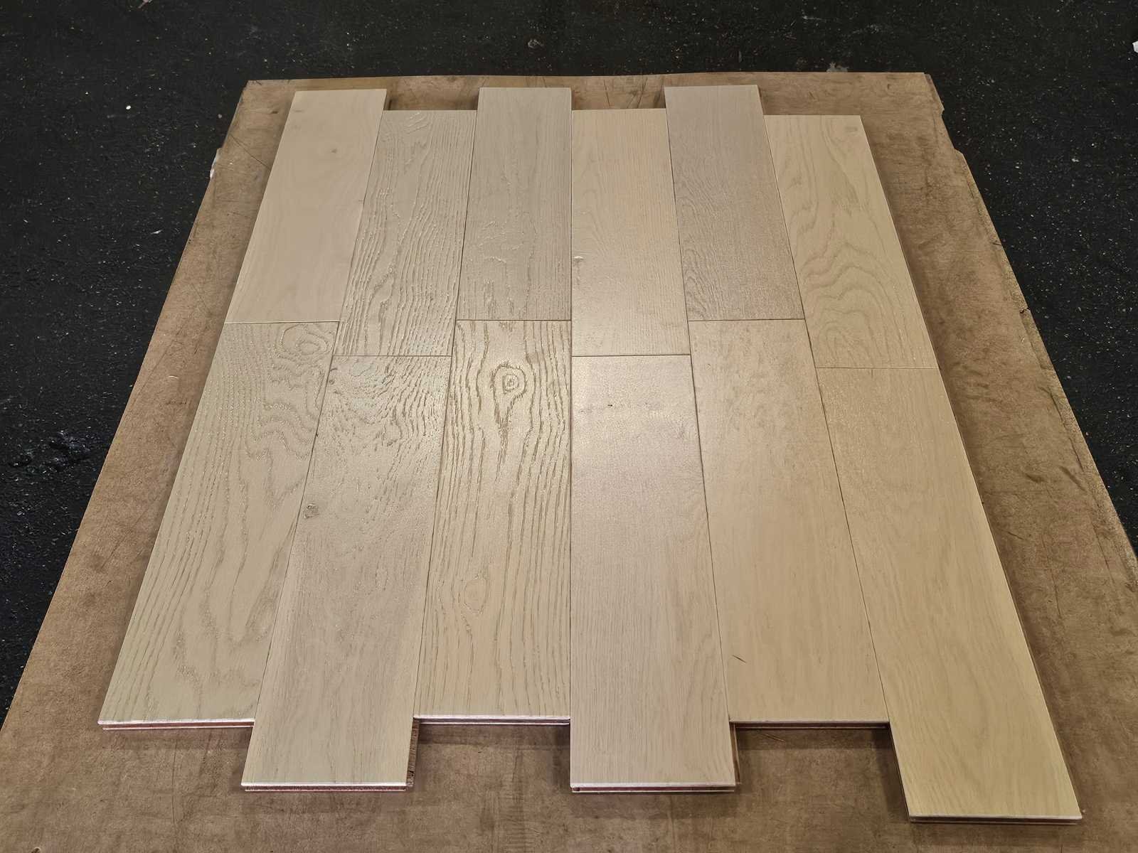 Gemakkelijk te leggen wegens mes en groef systeem, kwaliteits parketvloer, vloer is van hoogwaardig Europees eiken hout, dikte 14 mm, 109 pakken a 0,387 m2, met v-groef, dient verlijmd te worden Merk: Select floors Product type: Parket Oppervlakte: 42m² Geschikt voor vloerverwarming: Ja V-groef: Ja Afwerking: Met v-groef, gelakt, vlak afgewerkt Aantal m² per verpakking: 0.387m² Kleur: Wit Eiken Gewicht: 425kg Lengte: 508mm Breedte: 127mm Materiaal: Eiken multiplank