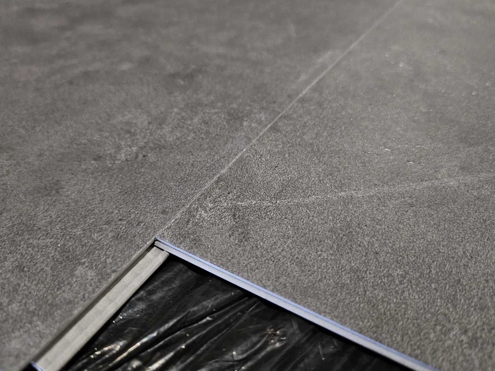 PVC click vloer, XL Tegel formaat, dikte 5 mm, spat water bestendig, voorzien van clicksysteem, vorstbestendig, ideaal voor vloerverwarming, kras en slijtvast, anti slip, gemakkelijk schoon te maken, 8 pakken a 3,572 m2 Merk: Airial flooring Product type: PVC Oppervlakte: 28m² Geschikt voor vloerverwarming: Ja V-groef: Nee Afwerking: Voelbaar structuur, anti slip Aantal m² per verpakking: 3.572m² Kleur: Antraciet 804 Gewicht: 150kg Lengte: 950mm Breedte: 470mm Materiaal: PVC/SPC