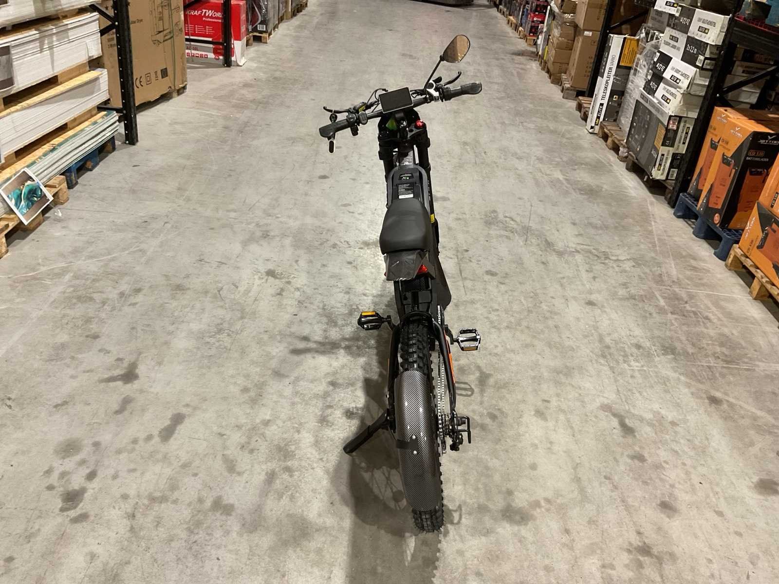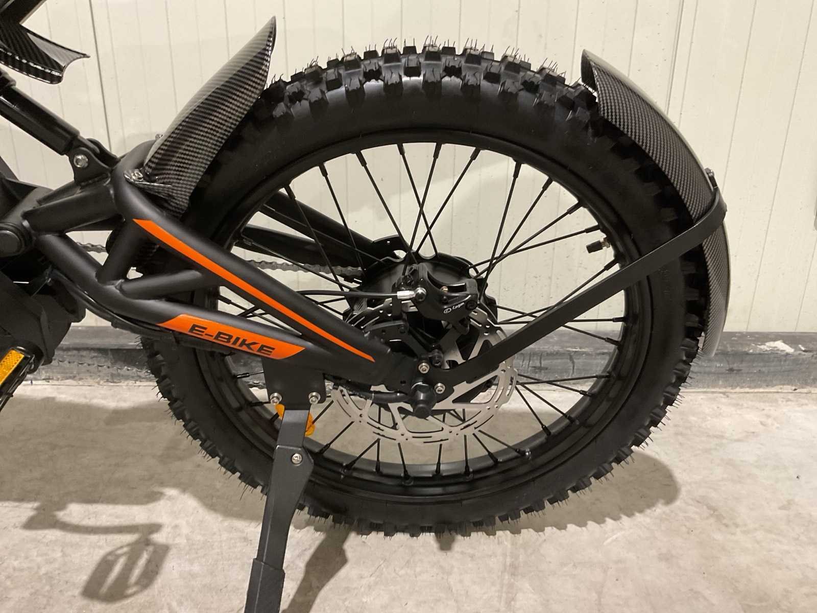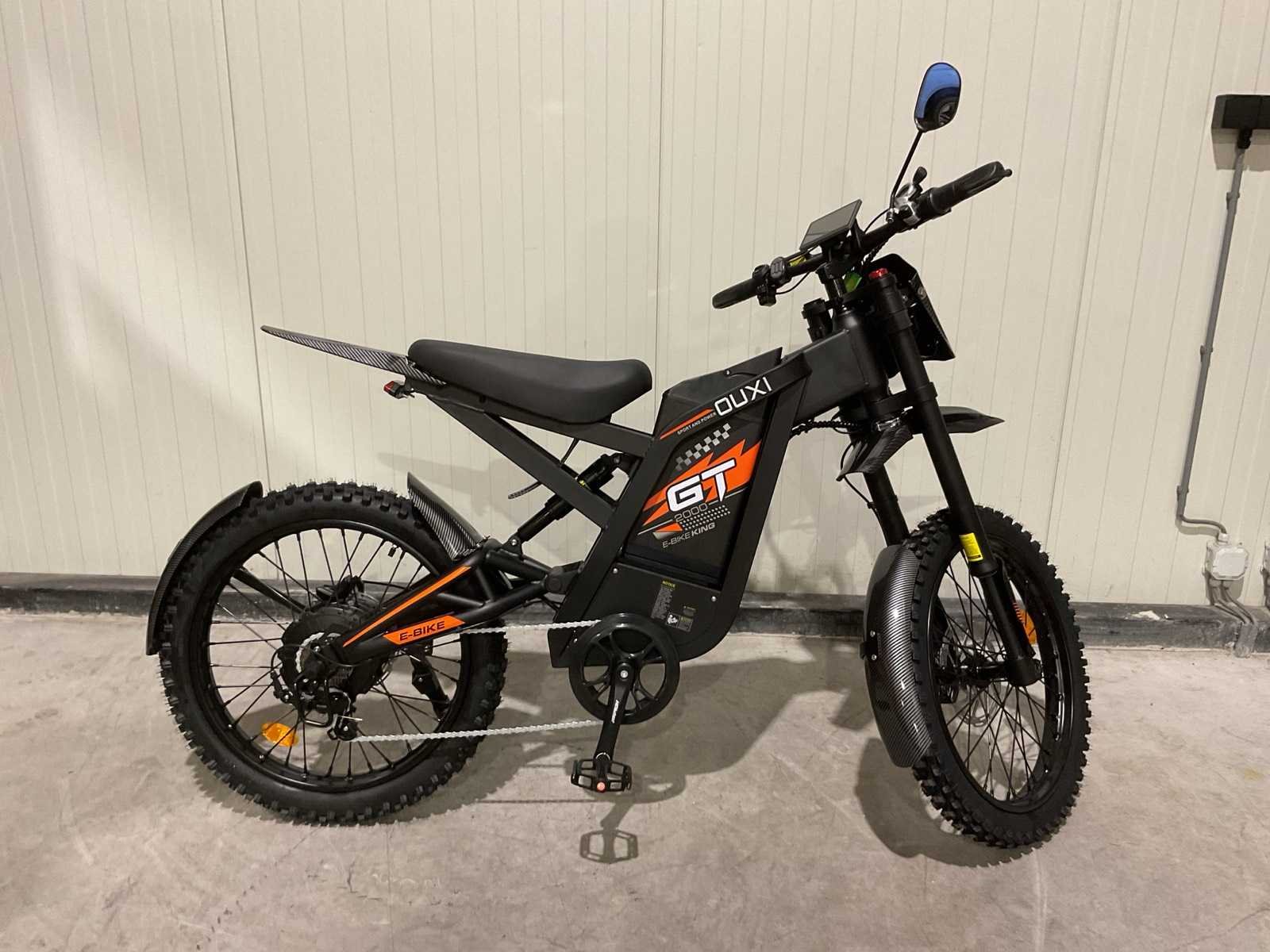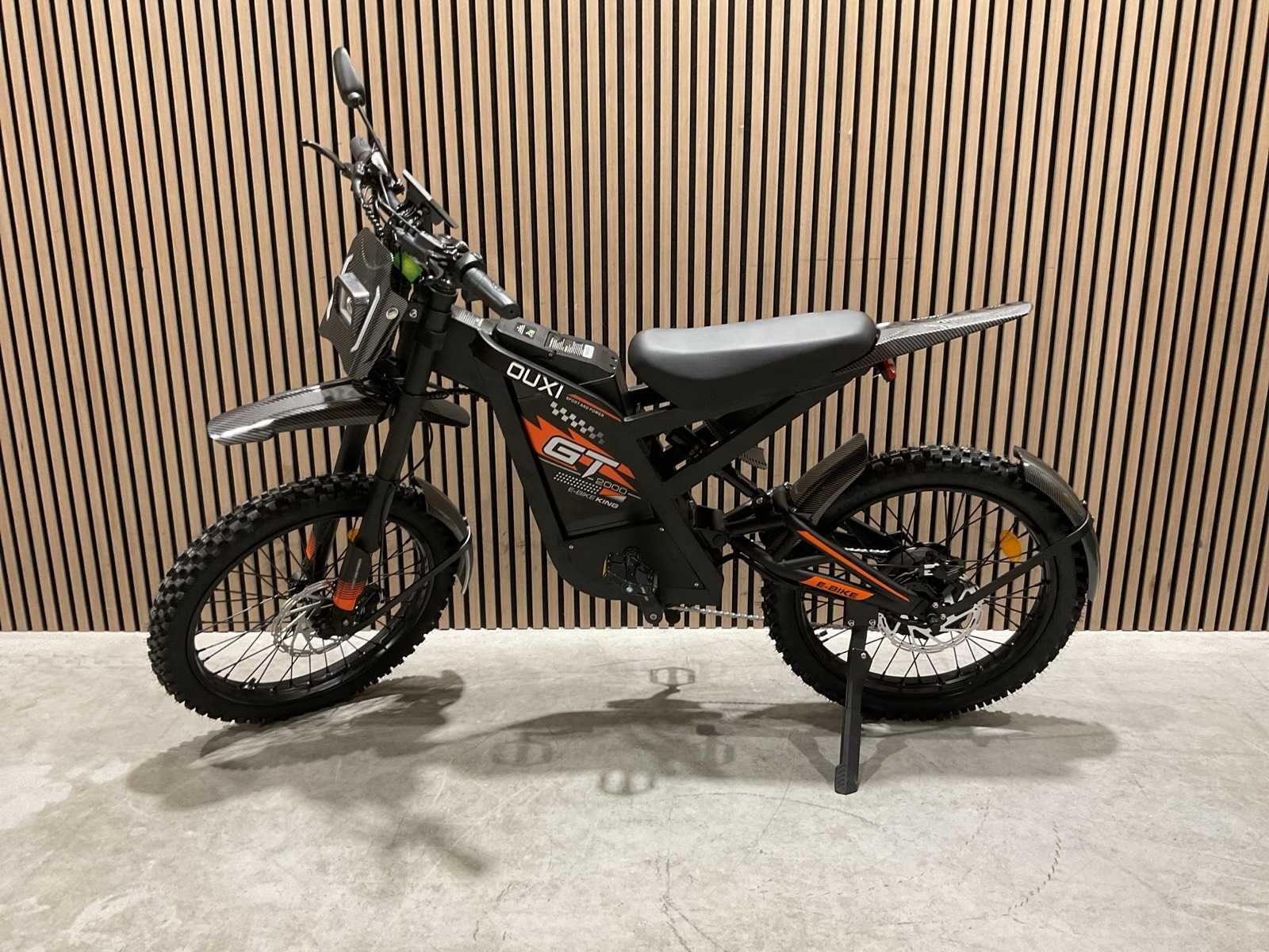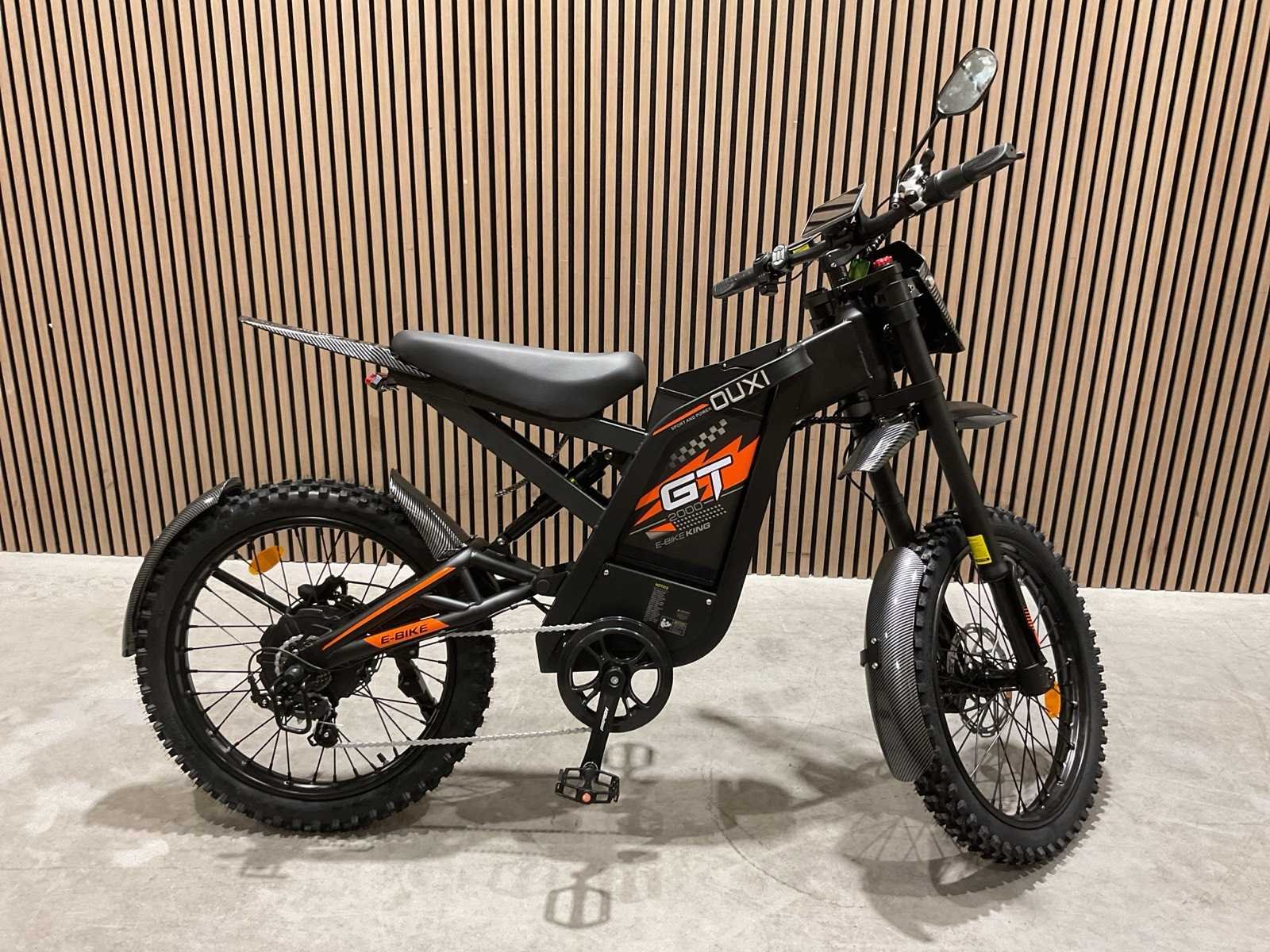 Voorzien van Nominaal motorvermogen: ca. 2000W; Accu: 48 V 30 Ah lithium-ion (verwisselbaar); Batterijcapaciteit: ca. 1440 Wh; topsnelheid: 25km/h; 19 inch wielen; schrijfremmen; Shimano 7-speed versnellingen; LCD-display; LED-koplamp, achterlicht; ongebruikt in doos Merk: Ouxi Model: GT2000 ZWART/ORANJE Product type: E-BIKE KING Remsysteem: Hydraulisch remsysteem Achtervering: true Voorvering: true Versnellingen: 7 Kleur: ZWART/ORANJE Gewicht: 64.5kg Lengte: 188cm Breedte: 63cm Hoogte: 115cm