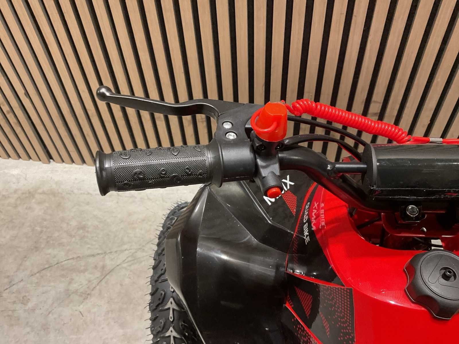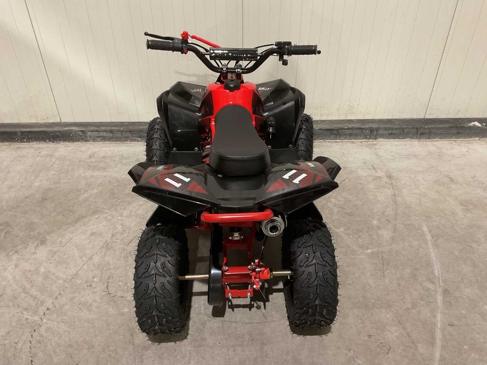 Voorzien van 49cc benzine motor; luchtgekoeld; trekstart; automaat; trekstart; schijfremmen; twee sleutels; Transport afmetingen: 105x62x52 cm; transport gewicht: 46kg; ongebruikt in doos Merk: MMX Model: TWHHATV-008 Product type: Rood Gewicht: 42kg Aantal sleutels: 2 Transmissie: Automaat Lengte: 120cm Breedte: 70cm Hoogte: 74cm