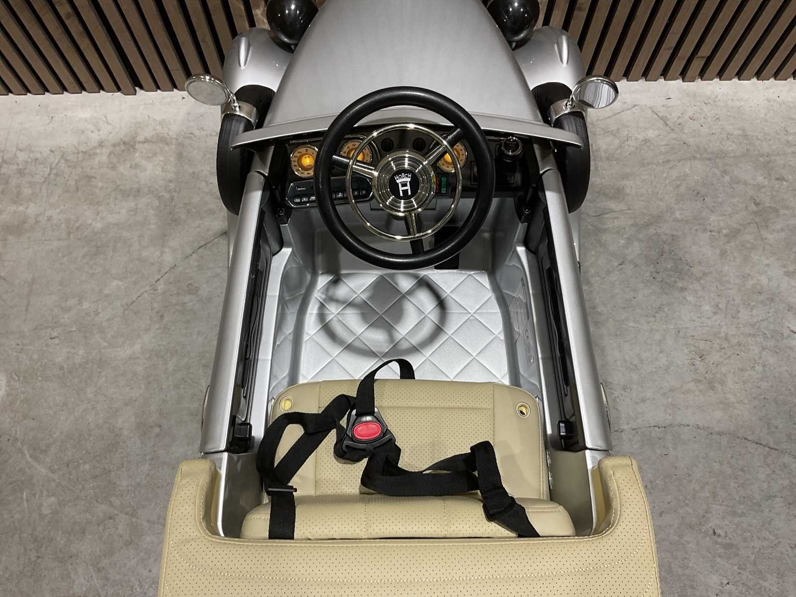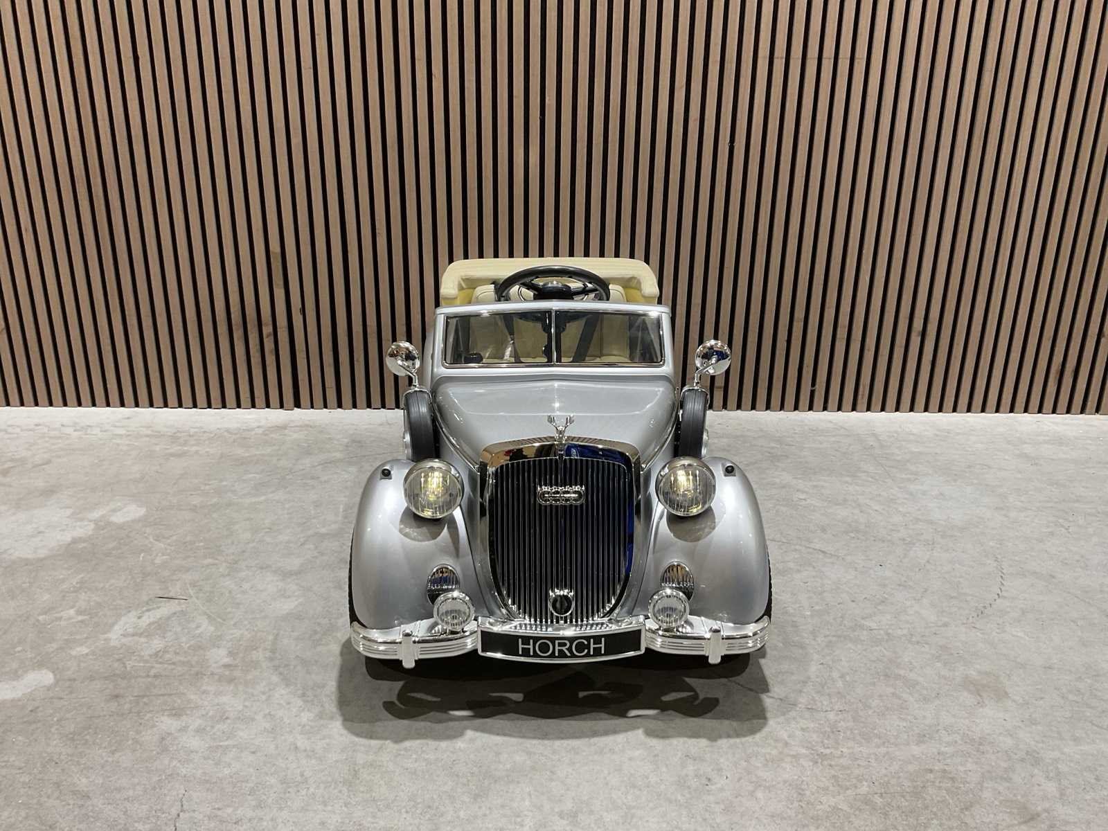 Voorzien van elektrische motor; Klassieke Horch design; Verlichting; openende deuren; maximum gewicht: 100kg; afstandsbediening; Voetpedaal; usb aansluiting; Geluidseffecten; ongebruikt in doos Merk: Audi Model: JE1005 Product type: Horch 930V zilver Gewicht: 24kg Lengte: 125cm Breedte: 65cm Hoogte: 60cm