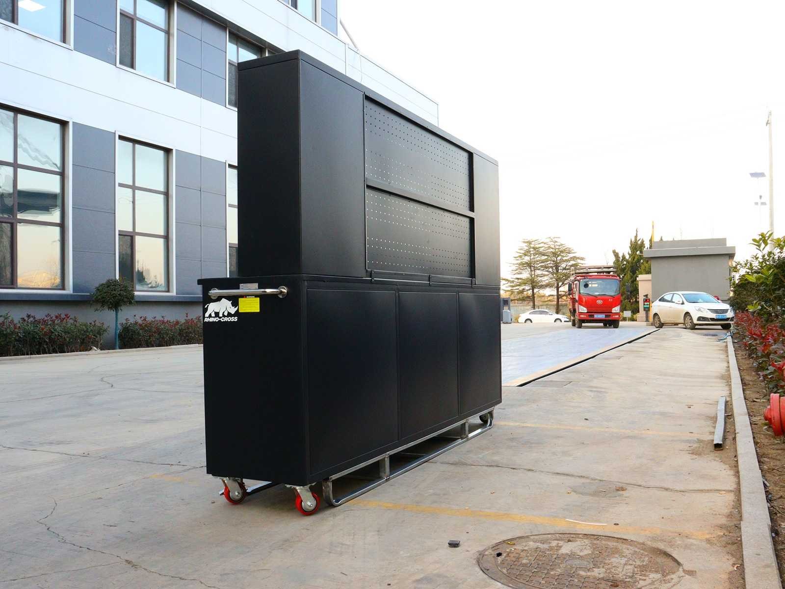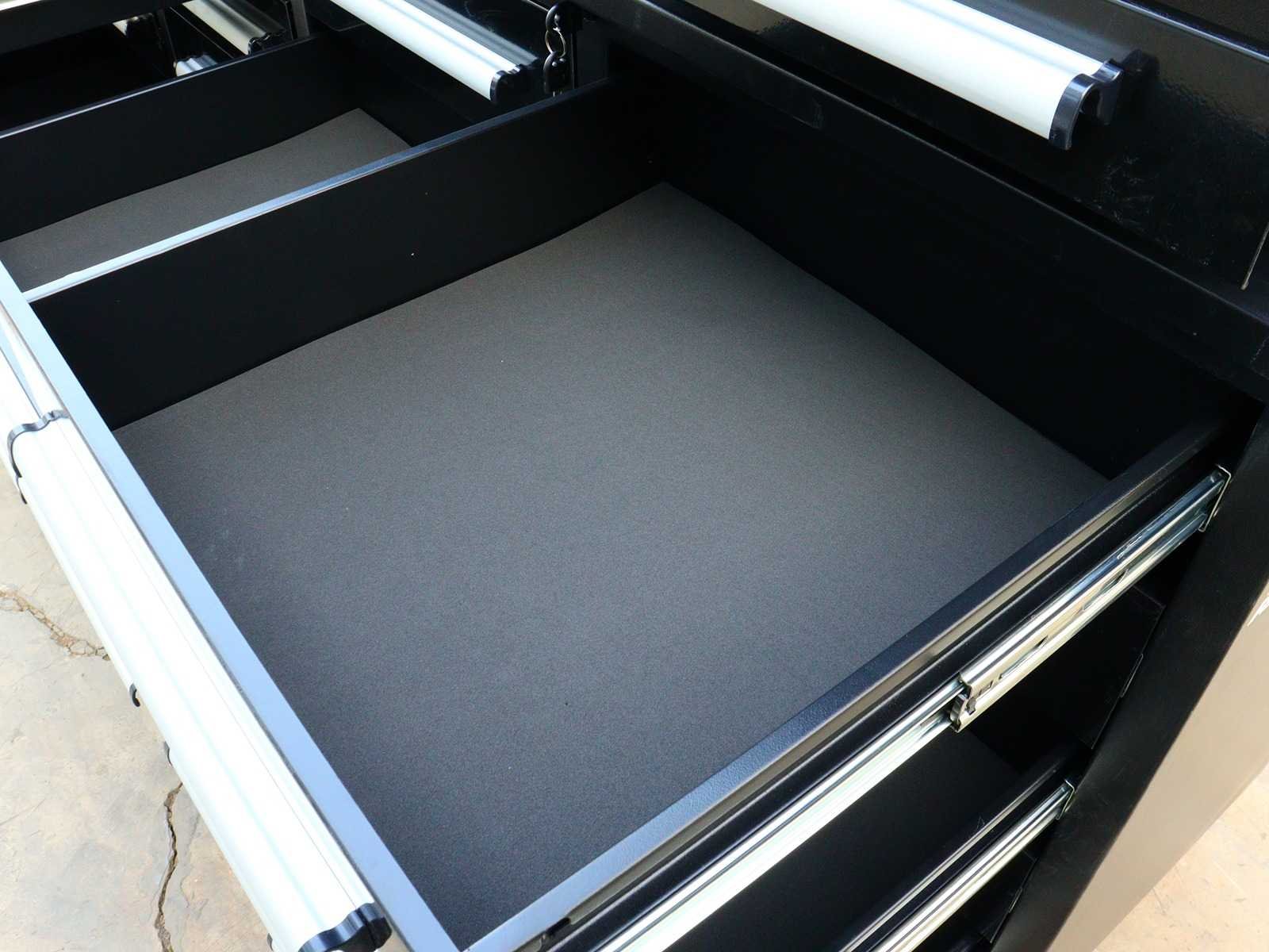 Voorzien van Gepoedercoat staal; 35 lades 2 kastdeuren; Ongebruikt (Transport afmetingen 2870x585x2050mm) Merk: Rhino-Cross-Workbench Product type: H10ft-35D-01C Zwart