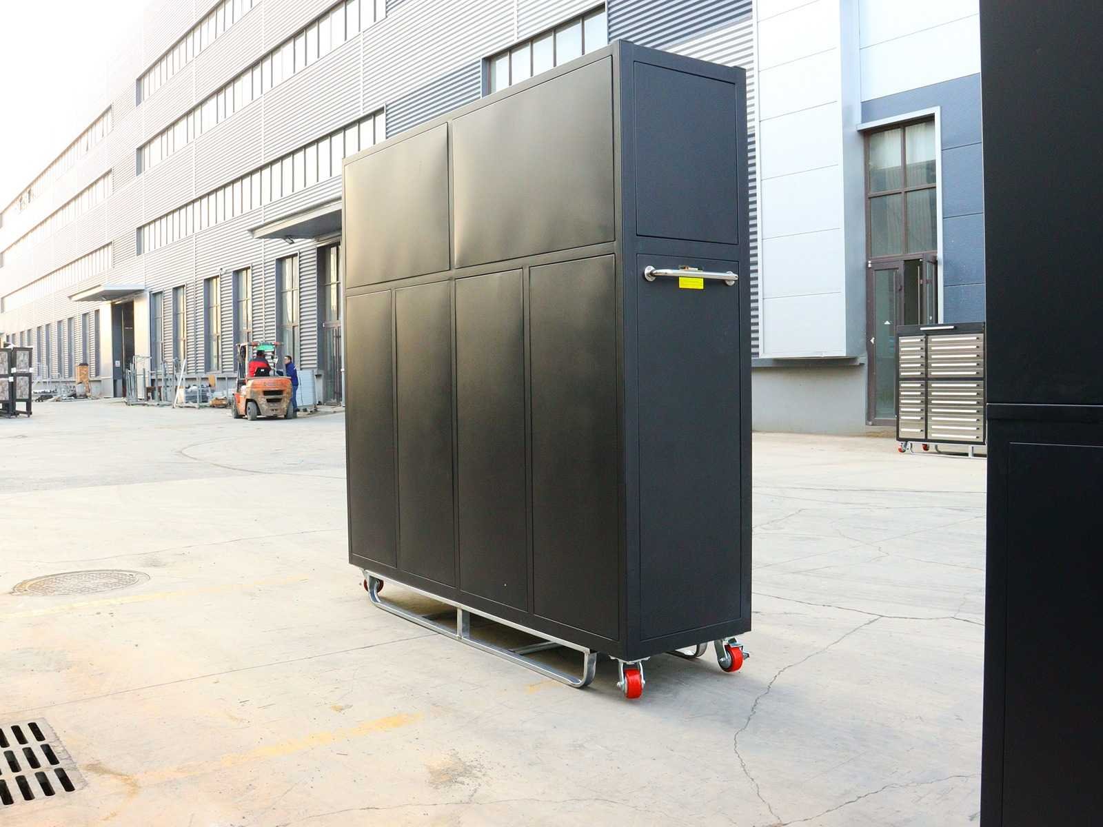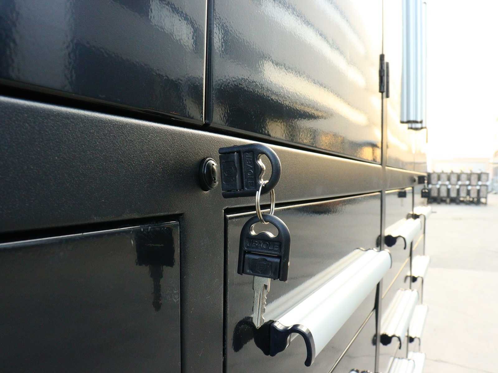 Voorzien van Gepoedercoat staal; 28 lades 2 kastdeuren; Ongebruikt (Transport afmetingen 2205x650x2050mm) Merk: Rhino-Cross-Workbench Product type: H7ft-28D-4-01C Zwart